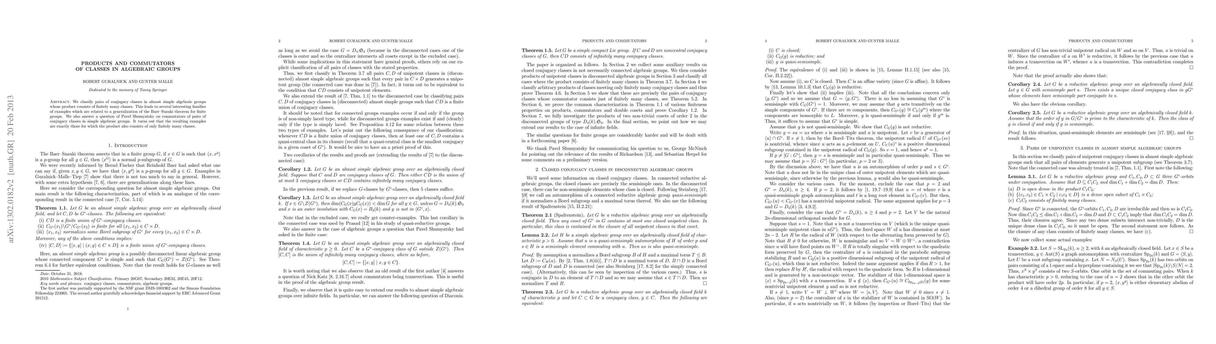 This paper classifies pairs of conjugacy classes in almost simple algebraic groups where their product comprises finitely many classes, leading to new examples related to a Baer-Suzuki theorem generalization. It also resolves a question on commutators of such pairs, showing the same finitely many class product condition.