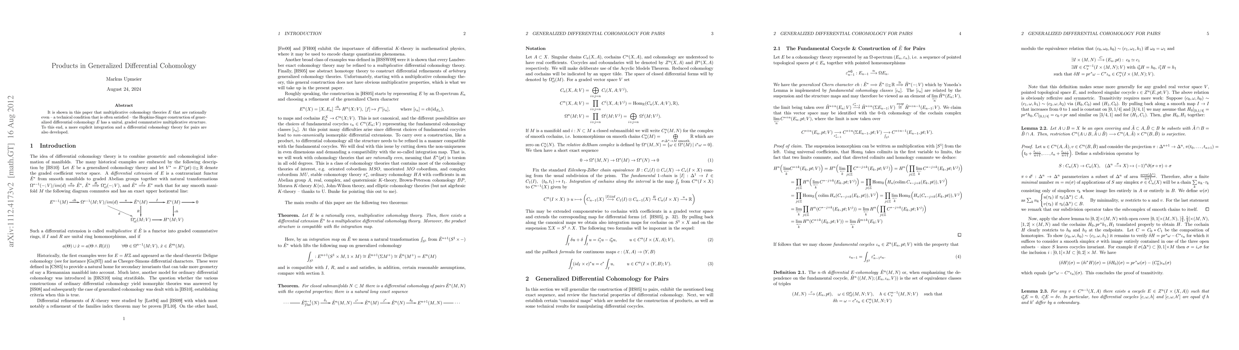 This paper demonstrates that rationally even multiplicative cohomology theories possess a unital, graded commutative structure within the Hopkins-Singer construction of generalized differential cohomology. It also develops an explicit integration method and a differential cohomology theory for pairs.