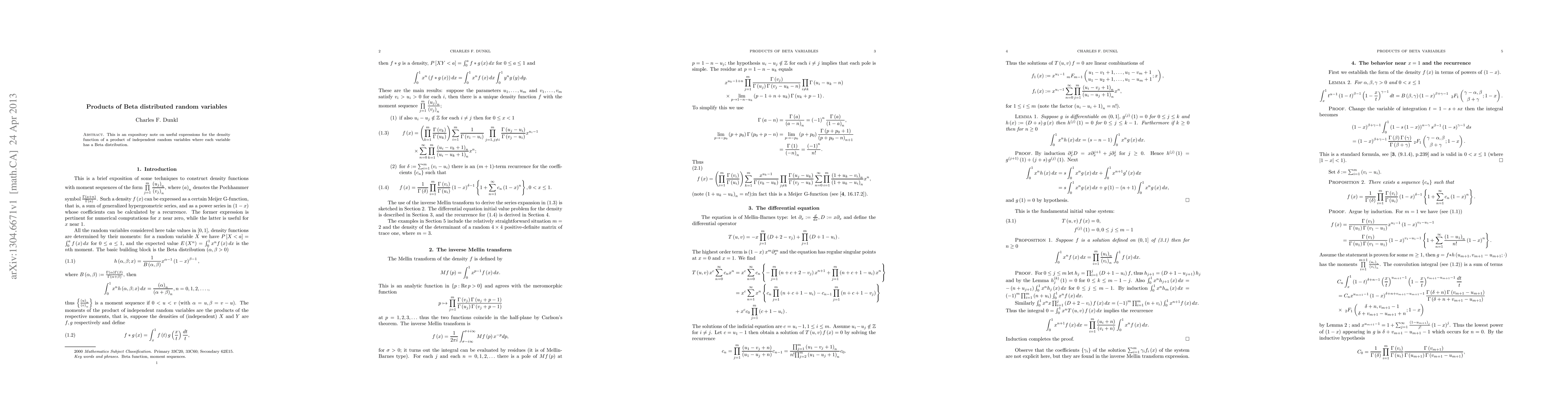 This is an expository note on useful expressions for the density function of a product of independent random variables where each variable has a Beta distribution.