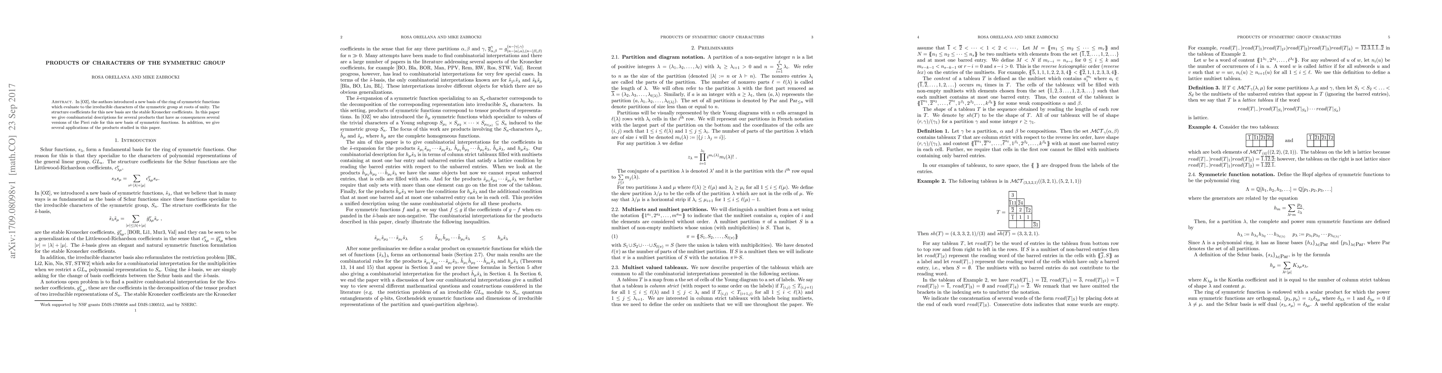 In a recent paper, the authors introduced a new basis of the ring of symmetric functions which evaluate to the irreducible characters of the symmetric group at roots of unity. The structure coefficients for this new basis are the stable Kronecker coefficients. In this paper we give combinatorial descriptions for several products that have as consequences several versions of the Pieri rule for this new basis of symmetric functions. In addition, we give several applications of the products studied in this paper.