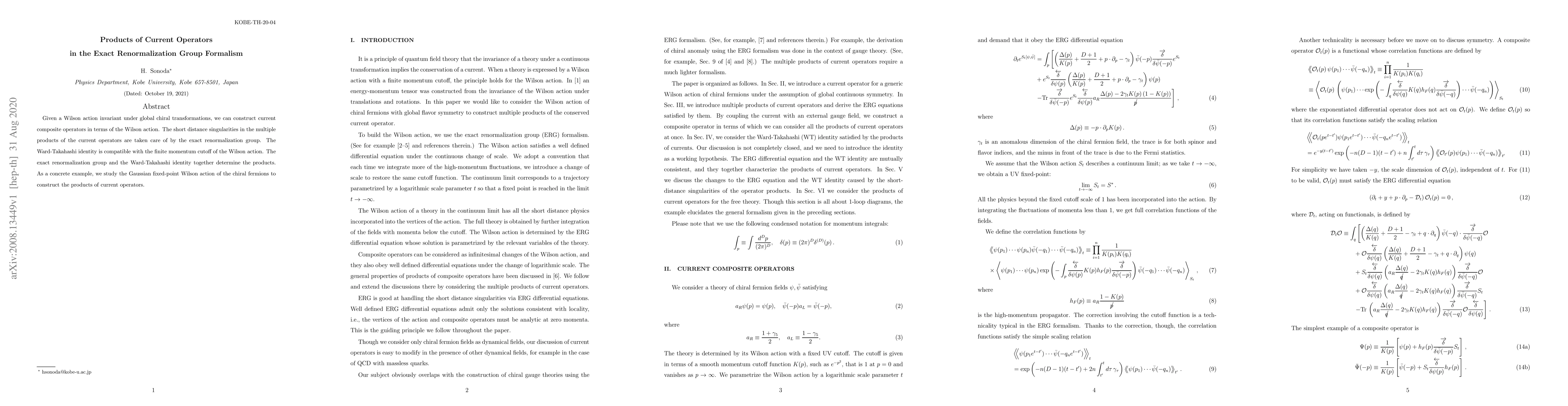 Given a Wilson action invariant under global chiral transformations, we can construct current composite operators in terms of the Wilson action. The short distance singularities in the multiple products of the current operators are taken care of by the exact renormalization group. The Ward-Takahashi identity is compatible with the finite momentum cutoff of the Wilson action. The exact renormalization group and the Ward-Takahashi identity together determine the products. As a concrete example, we study the Gaussian fixed-point Wilson action of the chiral fermions to construct the products of current operators.