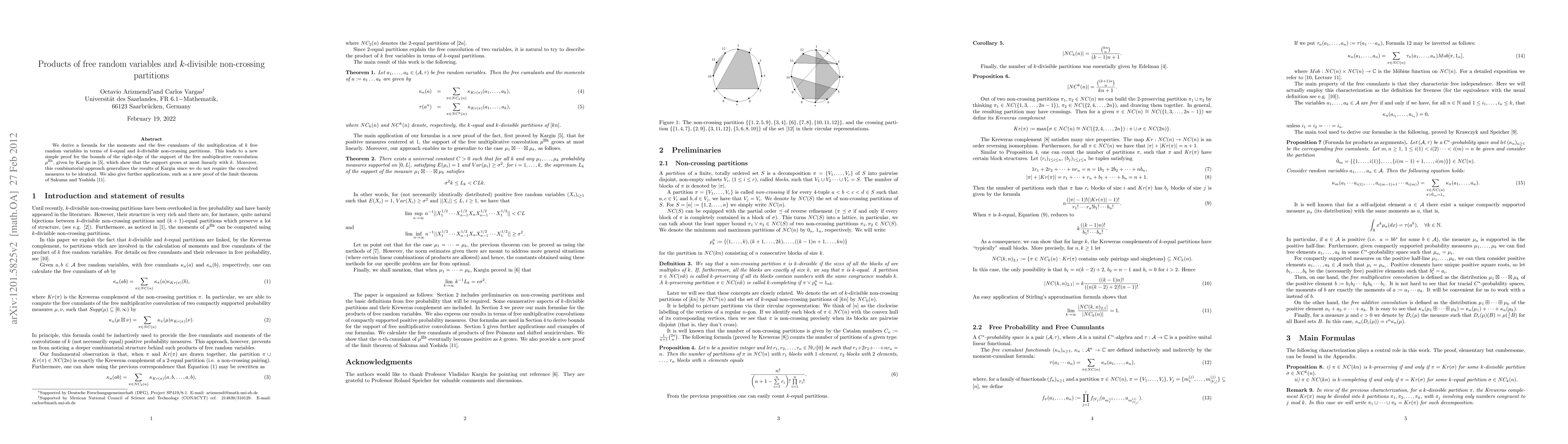 This paper derives a formula for the moments and free cumulants of the product of $k$ free random variables using $k$-equal and $k$-divisible non-crossing partitions, providing a new proof for the linear growth of the support of the free multiplicative convolution. It generalizes previous results by not requiring identical convolved measures and offers applications including a new proof of Sakuma and Yoshida's limit theorem.