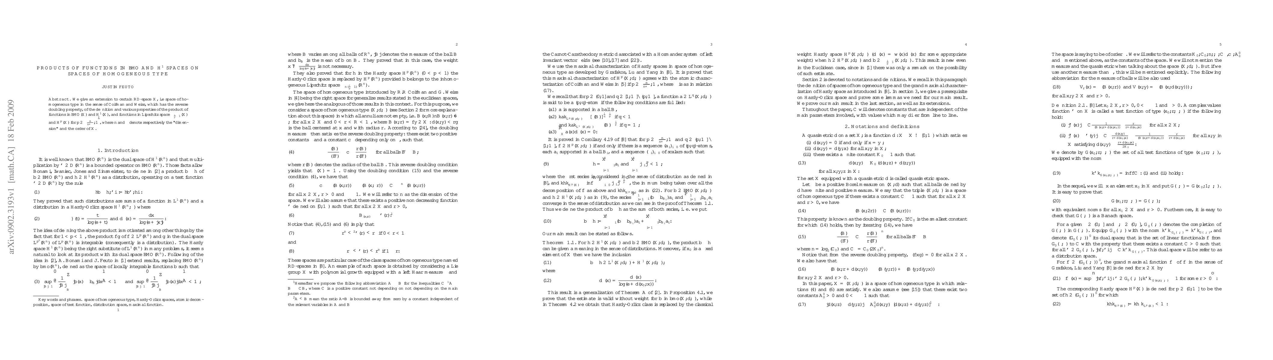 This paper extends product of functions in certain function spaces to homogeneous type spaces, exploring properties such as reverse doubling and implications for various scales and orders.
