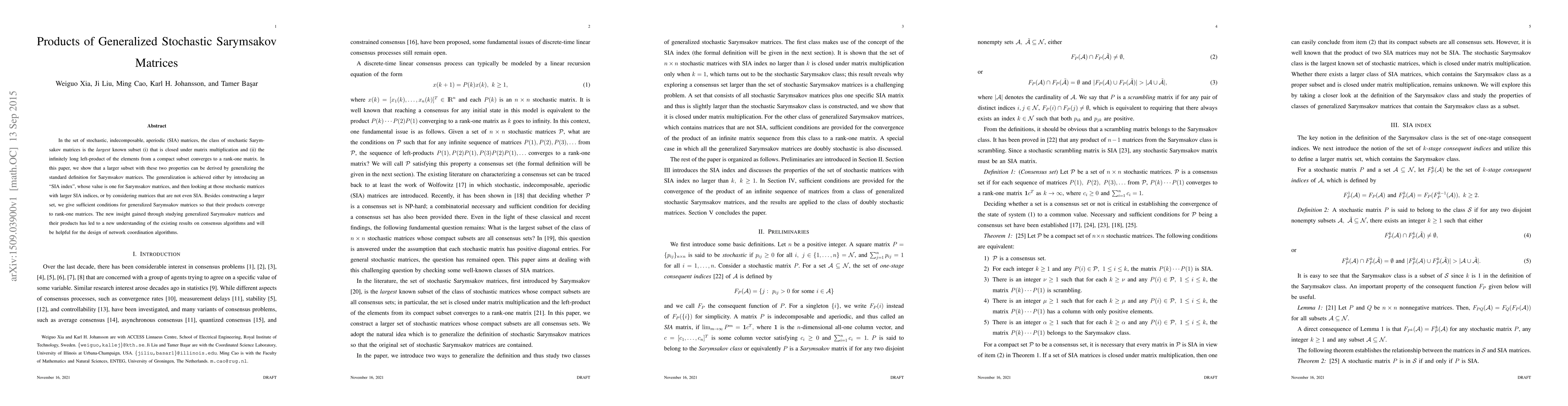 Researchers extend the concept of Sarymsakov matrices to create a larger subset that is closed under multiplication and converges to rank-one when left-multiplied. This work has implications for consensus algorithms and network coordination design.