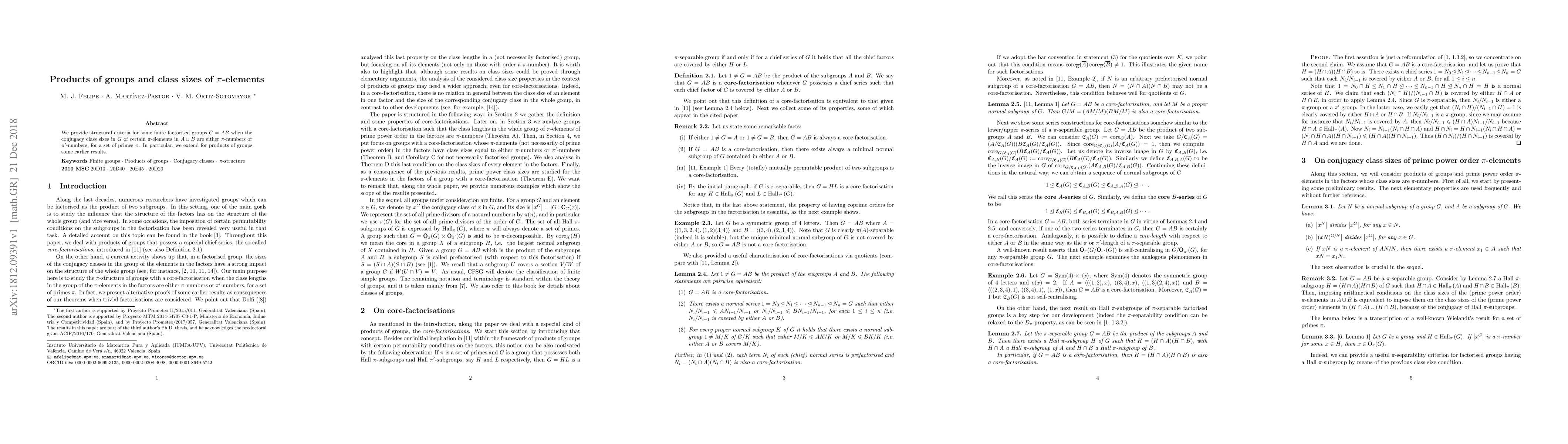 We provide structural criteria for some finite factorised groups $G = AB$ when the conjugacy class sizes in $G$ of certain $\pi$-elements in $A\cup B$ are either $\pi$-numbers or $\pi'$-numbers, for a set of primes $\pi$. In particular, we extend for products of groups some earlier results.