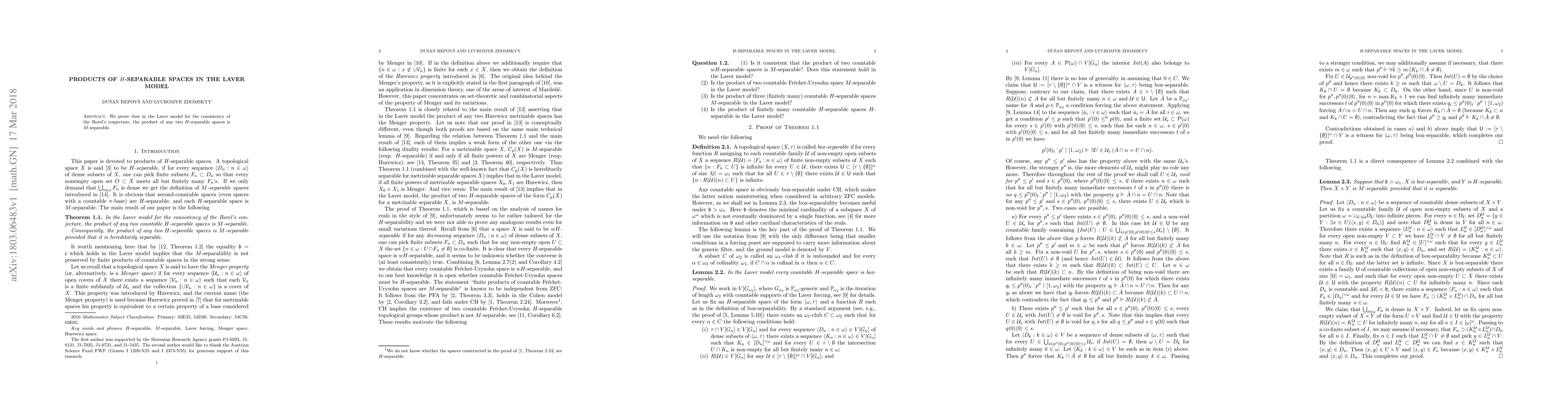 Summary: In the Laver model, the product of any two $H$-separable spaces is shown to be $M$-separable, supporting the consistency of Borel's conjecture. This result highlights the properties of $H$-separable spaces within this specific model.