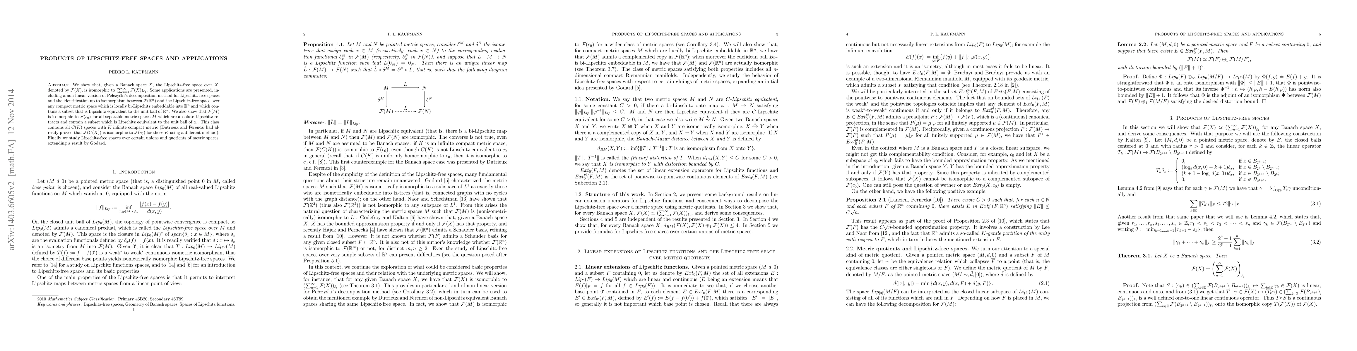 We show that, given a Banach space $X$, the Lipschitz-free space over $X$, denoted by $\mathcal{F}(X)$, is isomorphic to $(\sum_{n=1}^\infty \mathcal{F}(X))_{\ell_1}$. Some applications are presented, including a non-linear version of Pelczy\'ski's decomposition method for Lipschitz-free spaces and the identification up to isomorphism between $\mathcal{F}(\mathbb{R}^n)$ and the Lipschitz-free space over any compact metric space which is locally bi-Lipschitz embeddable into $\mathbb{R}^n$ and which contains a subset that is Lipschitz equivalent to the unit ball of $\mathbb{R}^n$. We also show that $\mathcal{F}(M)$ is isomorphic to $\mathcal{F}(c_0)$ for all separable metric spaces $M$ which are absolute Lipschitz retracts and contain a subset which is Lipschitz equivalent to the unit ball of $c_0$. This class contains all $C(K)$ spaces with $K$ infinite compact metric (Dutrieux and Ferenczi had already proved that $\mathcal{F}(C(K))$ is isomorphic to $\mathcal{F}(c_0)$ for those $K$ using a different method). Finally we study Lipschitz-free spaces over certain unions and quotients of metric spaces, extending a result by Godard.