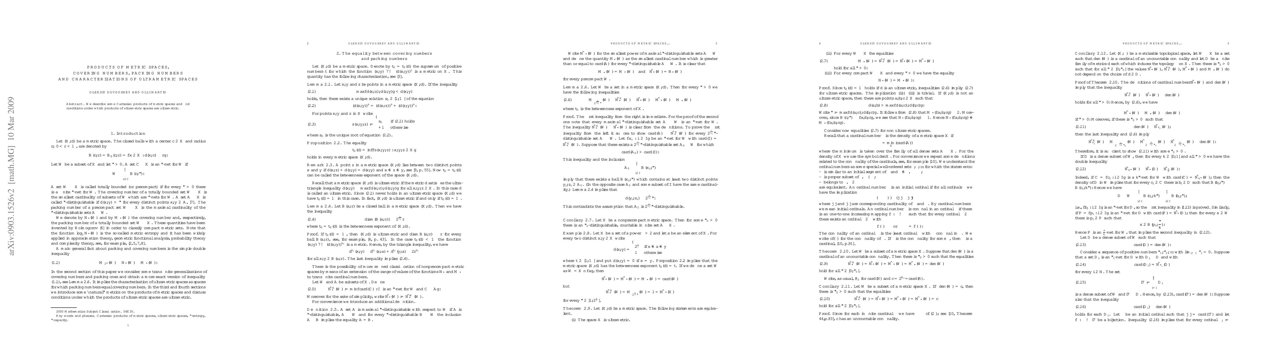 Summary: This paper explores Cartesian products of metric spaces and identifies conditions for the resulting product to remain ultrametric, focusing on the properties of covering and packing numbers in ultrametric spaces.