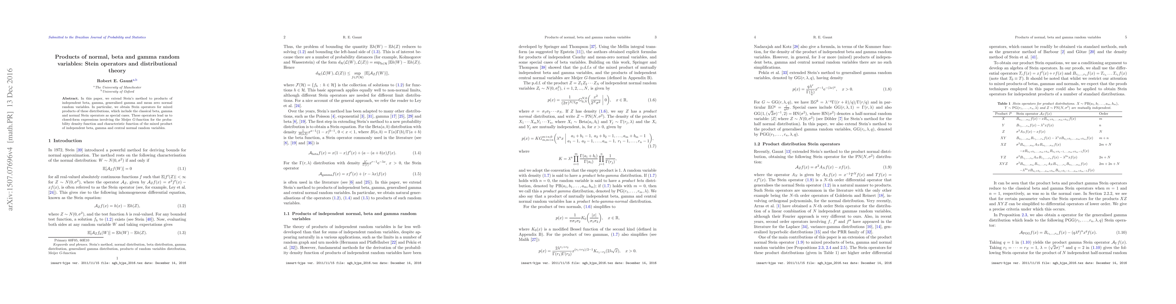 This paper extends Stein's method to products of beta, gamma, generalised gamma, and mean zero normal random variables, providing Stein operators for mixed products and closed-form expressions for their probability density and characteristic functions using the Meijer $G$-function.