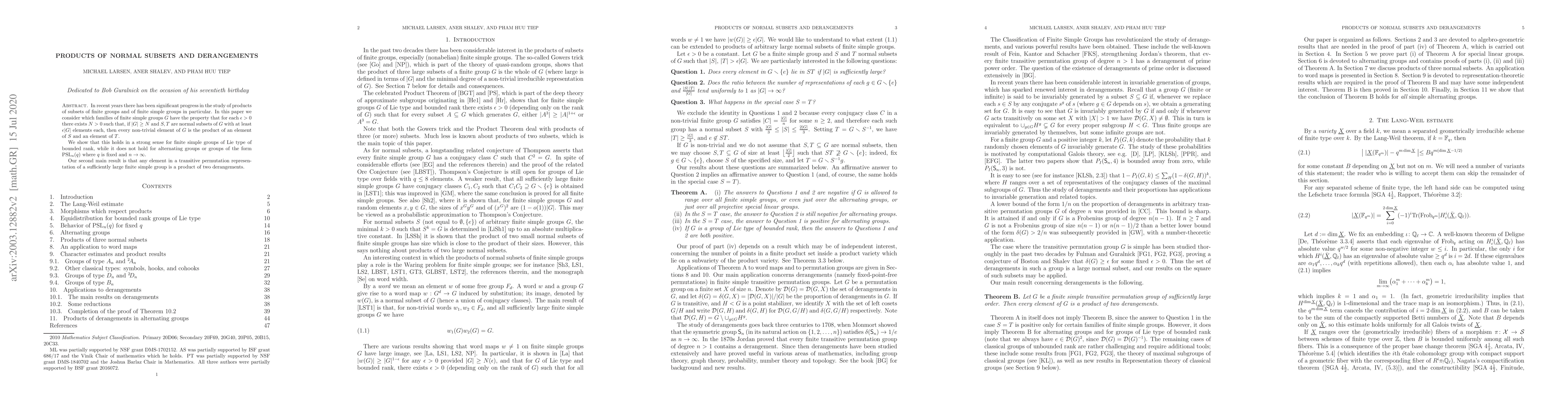 In recent years there has been significant progress in the study of products of subsets of finite groups and of finite simple groups in particular. In this paper we consider which families of finite simple groups $G$ have the property that for each $\epsilon > 0$ there exists $N > 0$ such that, if $|G| \ge N$ and $S, T$ are normal subsets of $G$ with at least $\epsilon |G|$ elements each, then every non-trivial element of $G$ is the product of an element of $S$ and an element of $T$. We show that this holds in a strong sense for finite simple groups of Lie type of bounded rank, while it does not hold for alternating groups or groups of the form ${\mathrm{PSL}}_n(q)$ where $q$ is fixed and $n$ tends to infinity. Our second main result is that any element in a transitive permutation representation of a sufficiently large finite simple group is a product of two derangements.