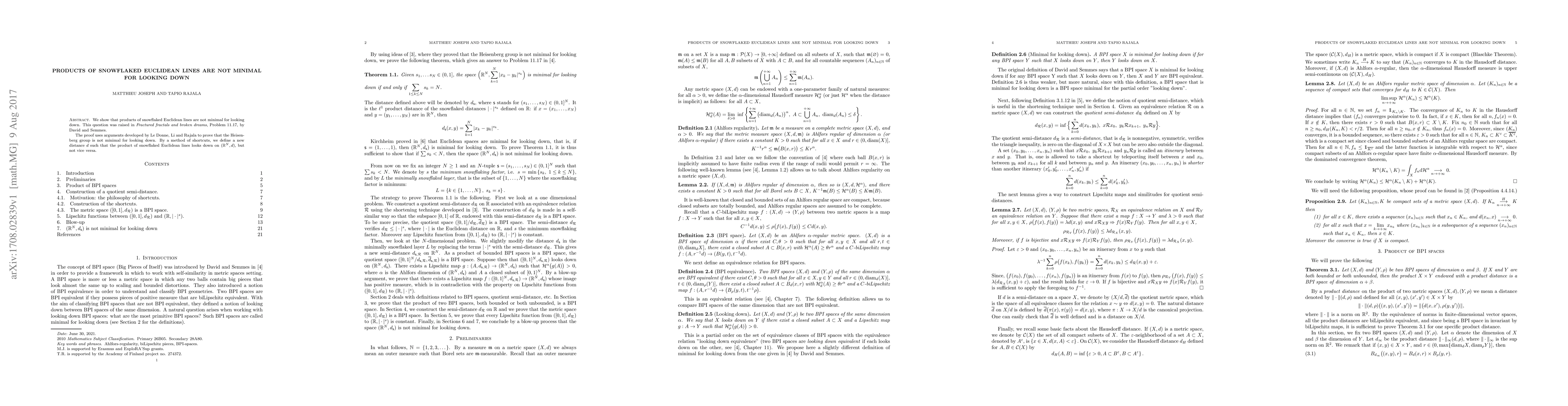 We show that products of snowflaked Euclidean lines are not minimal for looking down. This question was raised in Fractured fractals and broken dreams, Problem 11.17, by David and Semmes. The proof uses arguments developed by Le Donne, Li and Rajala to prove that the Heisenberg group is not minimal for looking down. By a method of shortcuts, we define a new distance $d$ such that the product of snowflaked Euclidean lines looks down on $(\mathbb R^N,d)$, but not vice versa.