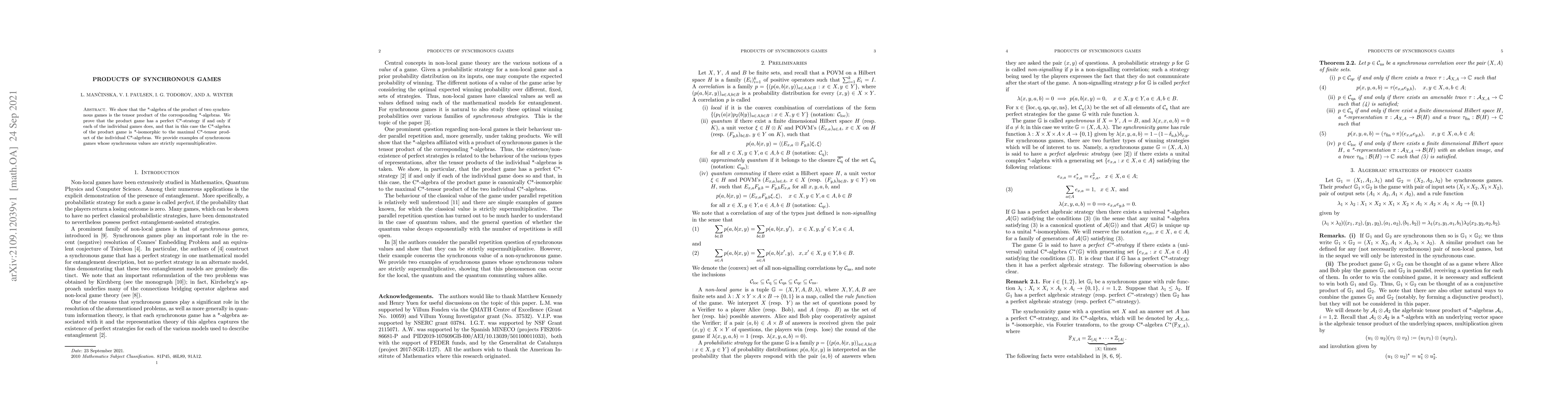 Researchers show that the *-algebra of a product of two synchronous games is equivalent to the tensor product of the individual *-algebras, with implications for strategies and C*-algebra structures.