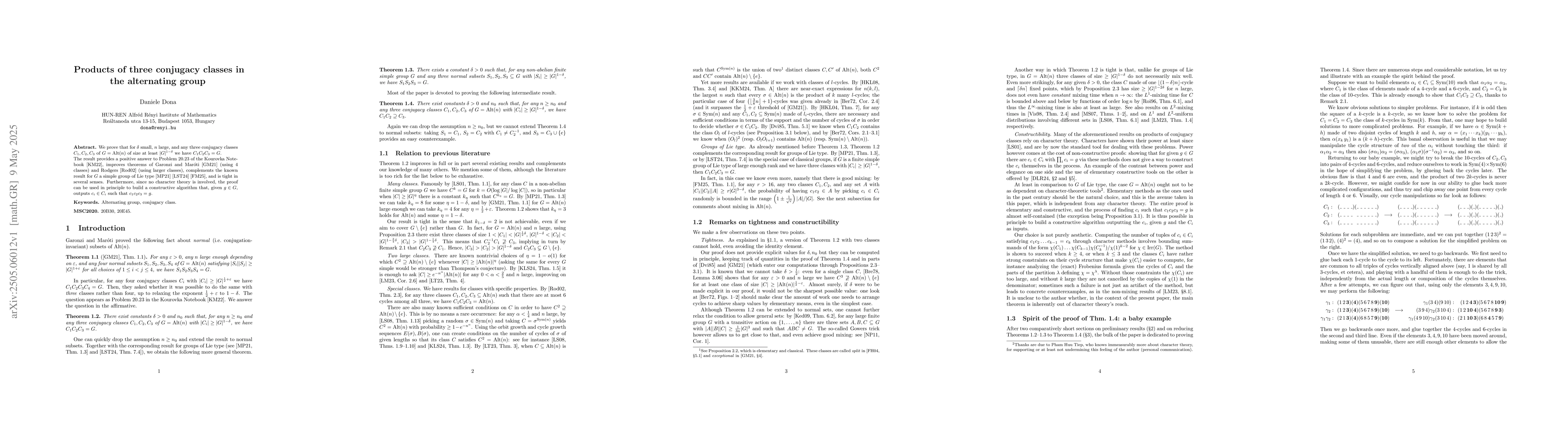 The paper provides a proof for a specific case in group theory concerning the alternating group Alt(n).