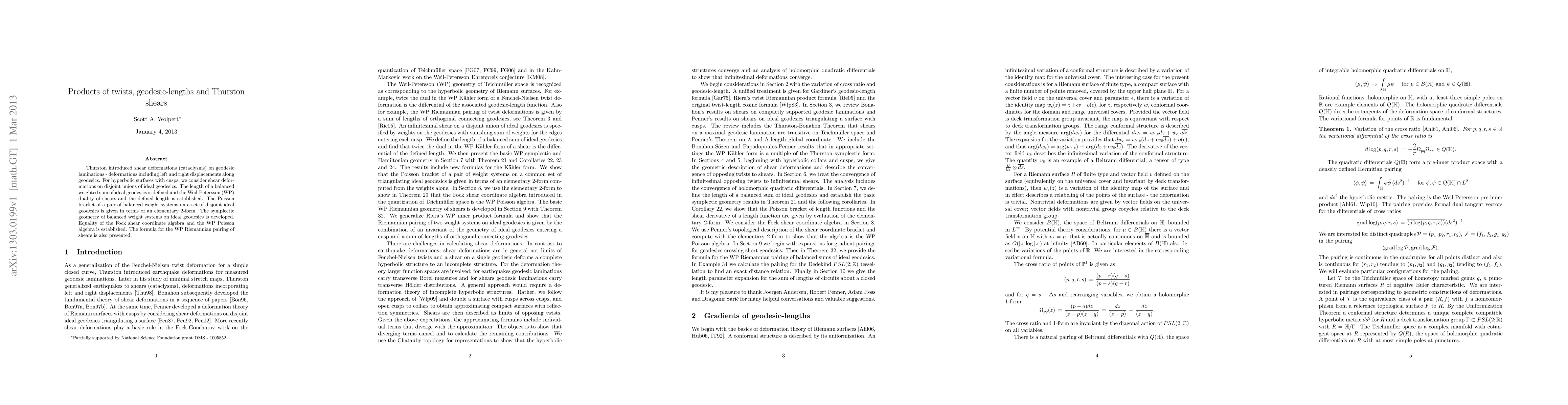 This paper explores shear deformations on disjoint ideal geodesics in hyperbolic surfaces with cusps, establishing the Weil-Petersson duality of shears and geodesic lengths. It develops the symplectic geometry of balanced weight systems and proves the equivalence of the Fock shear coordinate algebra and the WP Poisson algebra.