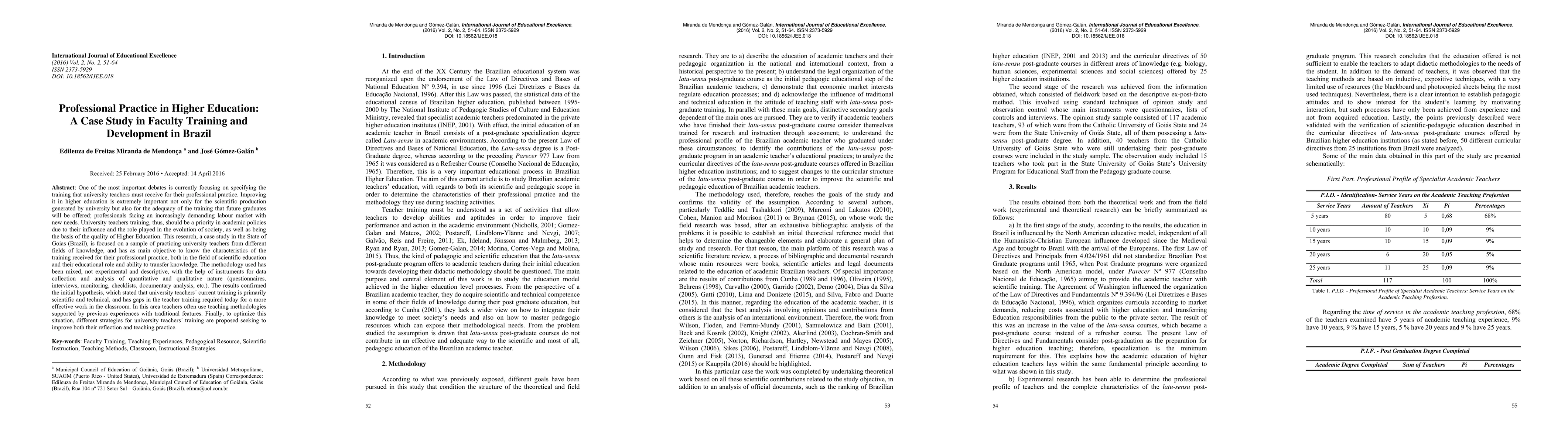 One of the most important debates is currently focusing on specifying the training that university teachers must receive for their professional practice. Improving it in higher education is extremely important not only for the scientific production generated by university but also for the adequacy of the training that future graduates will be offered; professionals facing an increasingly demanding labour market with new needs. University teachers training, thus, should be a priority in academic policies due to their influence and the role played in the evolution of society, as well as being the basis of the quality of Higher Education. This research, a case study in the State of Goias (Brazil), is focused on a sample of practicing university teachers from different fields of knowledge, and has as main objective to know the characteristics of the training received for their professional practice, both in the field of scientific education and their educational role and ability to transfer knowledge. The methodology used has been mixed, not experimental and descriptive, with the help of instruments for data collection and analysis of quantitative and qualitative nature (questionnaires, interviews, monitoring, checklists, documentary analysis, etc.). The results confirmed the initial hypothesis, which stated that university teachers current training is primarily scientific and technical, and has gaps in the teacher training required today for a more effective work in the classroom. In this area teachers often use teaching methodologies supported by previous experiences with traditional features. Finally, to optimize this situation, different strategies for university teachers training are proposed seeking to improve both their reflection and teaching practice.