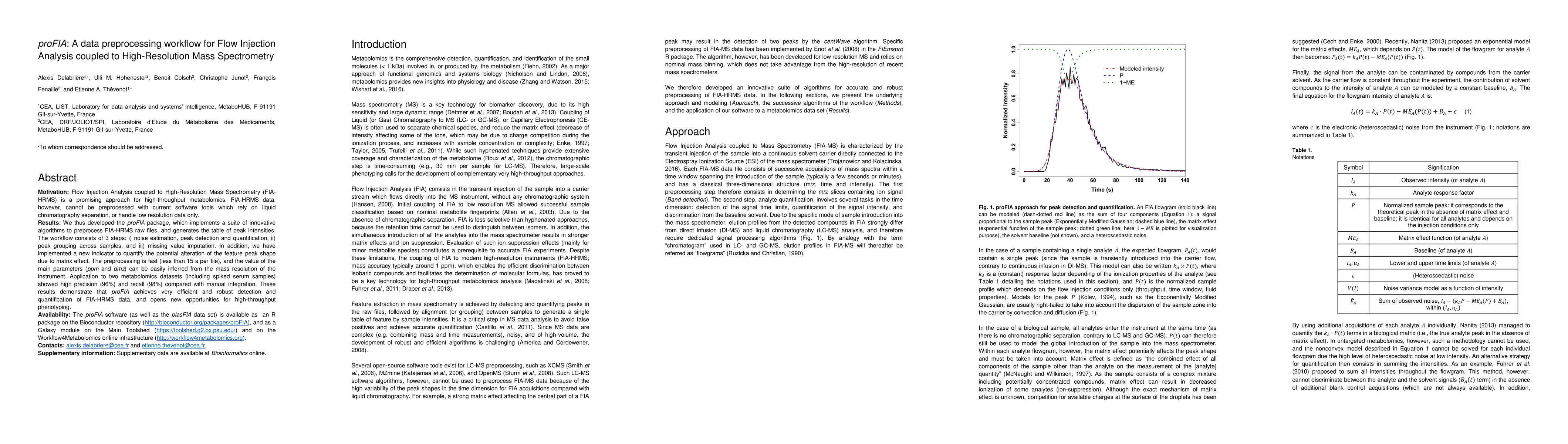 A new software package called proFIA has been developed to efficiently preprocess Flow Injection Analysis coupled to High-Resolution Mass Spectrometry data, achieving high precision and robust detection in metabolomics studies.