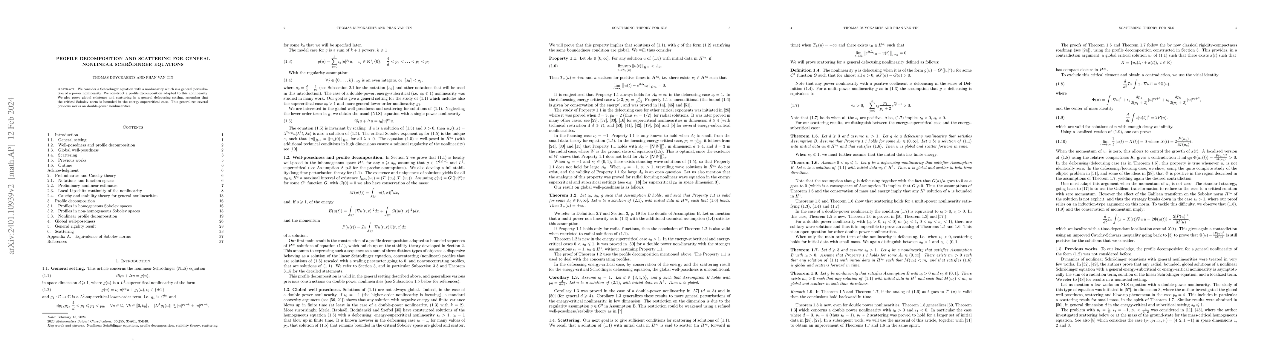 We consider a Schr{\"o}dinger equation with a nonlinearity which is a general perturbation of a power'' nonlinearity. We construct a profile decomposition adapted to this nonlinearity.We also prove global existence and scattering in a general defocusing setting, assuming thatthe critical Sobolev norm is bounded in the energy-supercritical case. This generalizes severalprevious works on double-power nonlinearities.