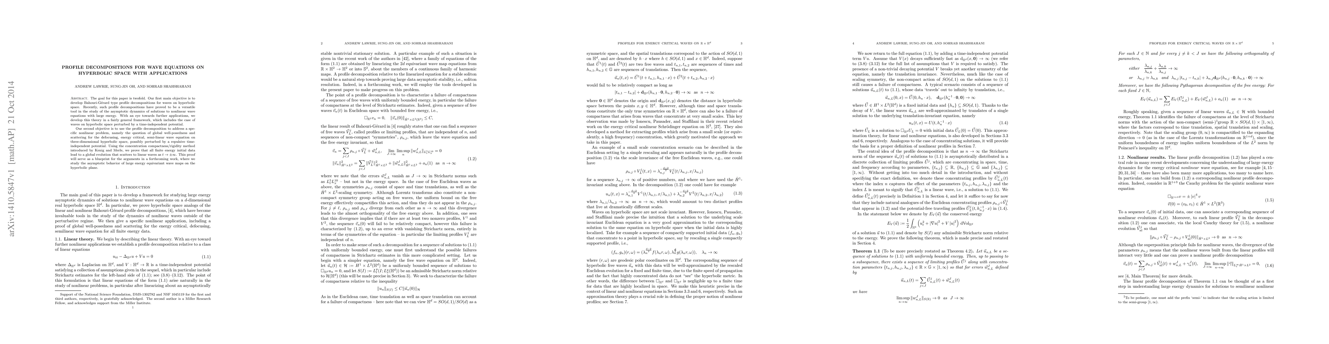 This paper develops Bahouri-Gerard type profile decompositions for waves on hyperbolic space, including perturbations, and applies this theory to prove global well-posedness and scattering for the energy-critical semi-linear wave equation on three-dimensional hyperbolic space. The results provide a foundation for future studies on large energy wave maps.