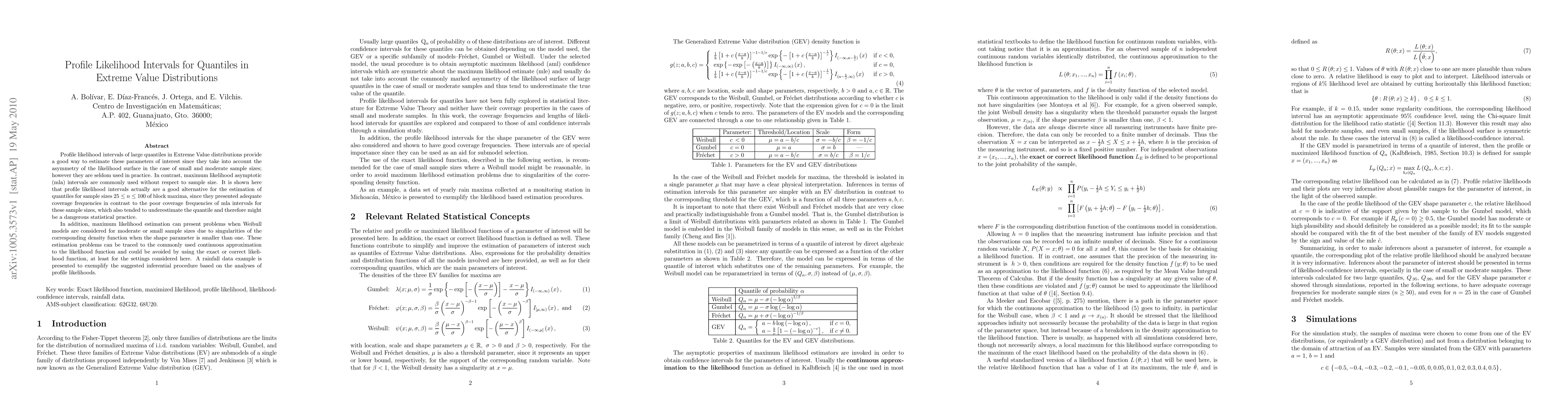 This paper proposes profile likelihood intervals for estimating large quantiles in extreme value distributions, demonstrating their adequacy for sample sizes between 25 and 100, where they outperform maximum likelihood asymptotic intervals. It also addresses estimation issues in Weibull models for small samples and suggests using the exact likelihood function to avoid singularities.