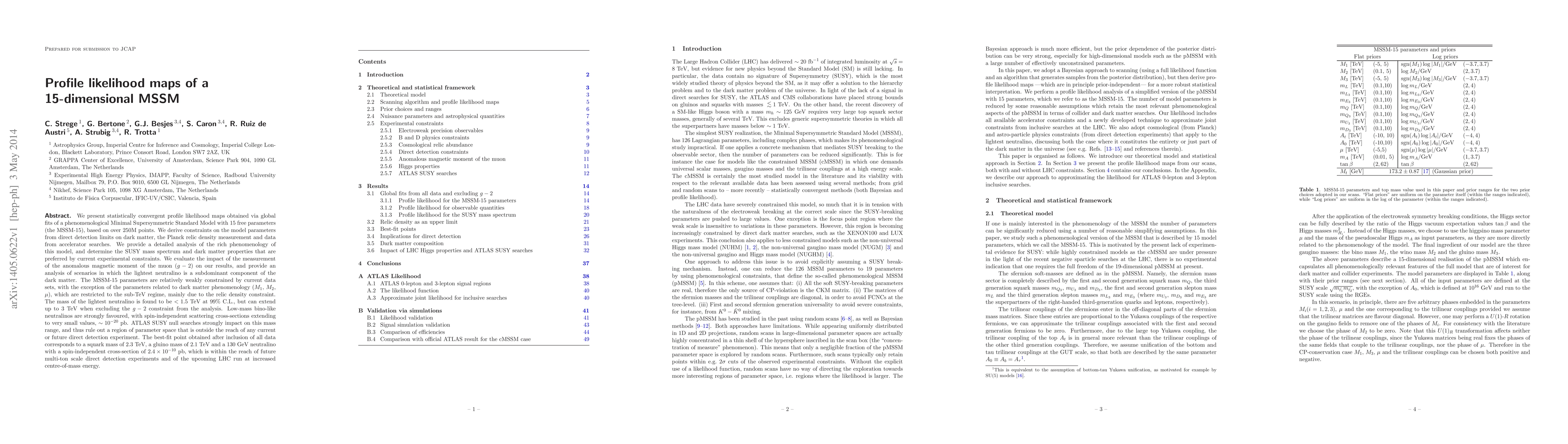 We present statistically convergent profile likelihood maps obtained via global fits of a phenomenological Minimal Supersymmetric Standard Model with 15 free parameters (the MSSM-15), based on over 250M points. We derive constraints on the model parameters from direct detection limits on dark matter, the Planck relic density measurement and data from accelerator searches. We provide a detailed analysis of the rich phenomenology of this model, and determine the SUSY mass spectrum and dark matter properties that are preferred by current experimental constraints. We evaluate the impact of the measurement of the anomalous magnetic moment of the muon ($g-2$) on our results, and provide an analysis of scenarios in which the lightest neutralino is a subdominant component of the dark matter. The MSSM-15 parameters are relatively weakly constrained by current data sets, with the exception of the parameters related to dark matter phenomenology ($M_1$, $M_2$, $\mu$), which are restricted to the sub-TeV regime, mainly due to the relic density constraint. The mass of the lightest neutralino is found to be < 1.5 TeV at 99% C.L., but can extend up to 3 TeV when excluding the $g - 2$ constraint from the analysis. Low-mass bino-like neutralinos are strongly favoured, with spin-independent scattering cross-sections extending to very small values, $\sim 10^{-20}$ pb. ATLAS SUSY null searches strongly impact on this mass range, and thus rule out a region of parameter space that is outside the reach of any current or future direct detection experiment. The best-fit point obtained after inclusion of all data corresponds to a squark mass of 2.3 TeV, a gluino mass of 2.1 TeV and a 130 GeV neutralino with a spin-independent cross-section of $2.4 \times 10^{-10}$ pb, which is within the reach of future multi-ton scale direct detection experiments and of the upcoming LHC run at increased centre-of-mass energy.