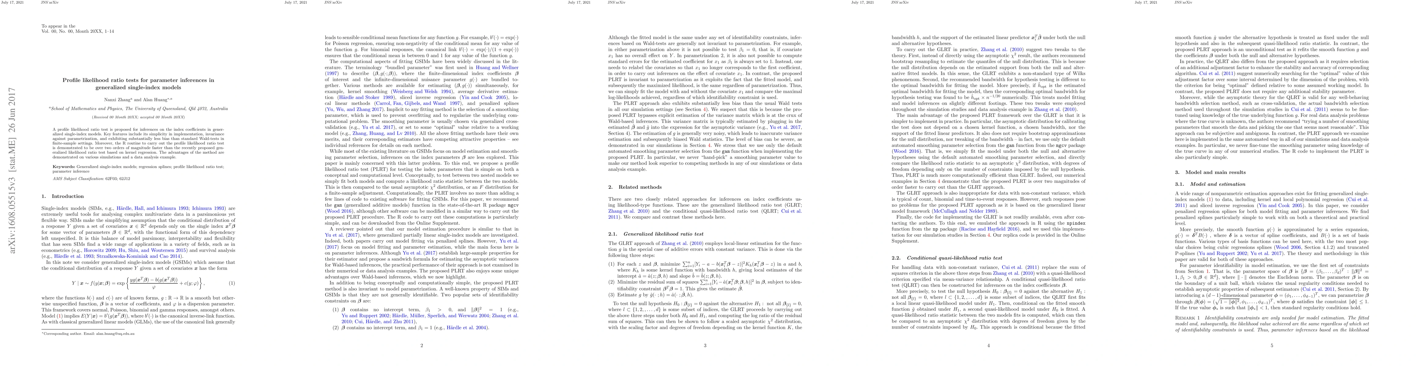 This paper proposes a profile likelihood ratio test for estimating index coefficients in generalized single-index models, highlighting its simplicity, invariance, and reduced bias compared to Wald-tests. The method is also shown to be significantly faster than a competing generalized likelihood ratio test, as demonstrated through simulations and a data analysis example.