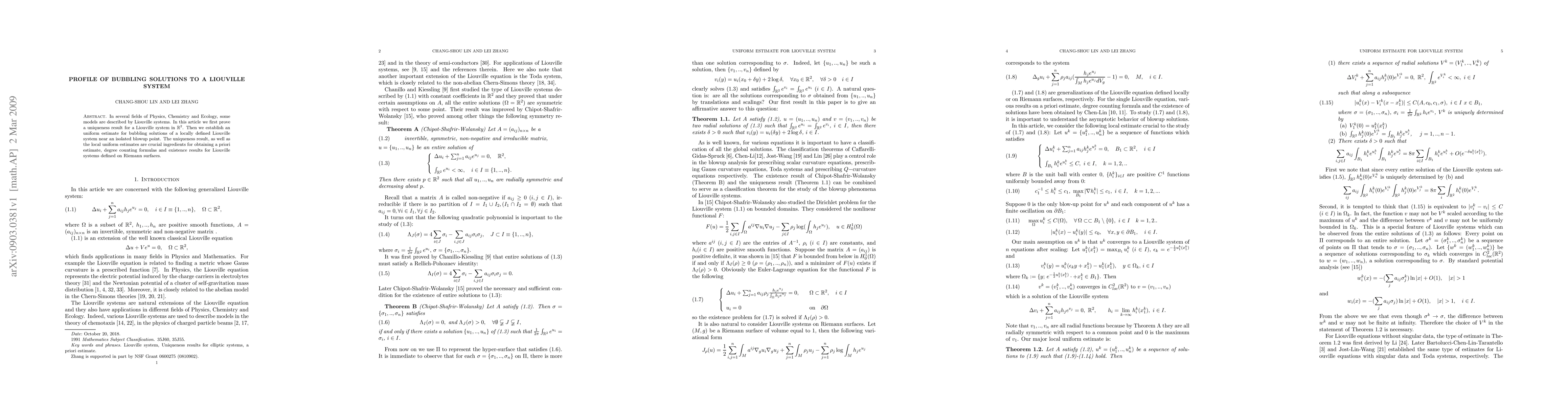 In several fields of Physics, Chemistry and Ecology, some models are described by Liouville systems. In this article we first prove a uniqueness result for a Liouville system in $\mathbb R^2$. Then we establish an uniform estimate for bubbling solutions of a locally defined Liouville system near an isolated blowup point. The uniqueness result, as well as the local uniform estimates are crucial ingredients for obtaining a priori estimate, degree counting formulas and existence results for Liouville systems defined on Riemann surfaces.
