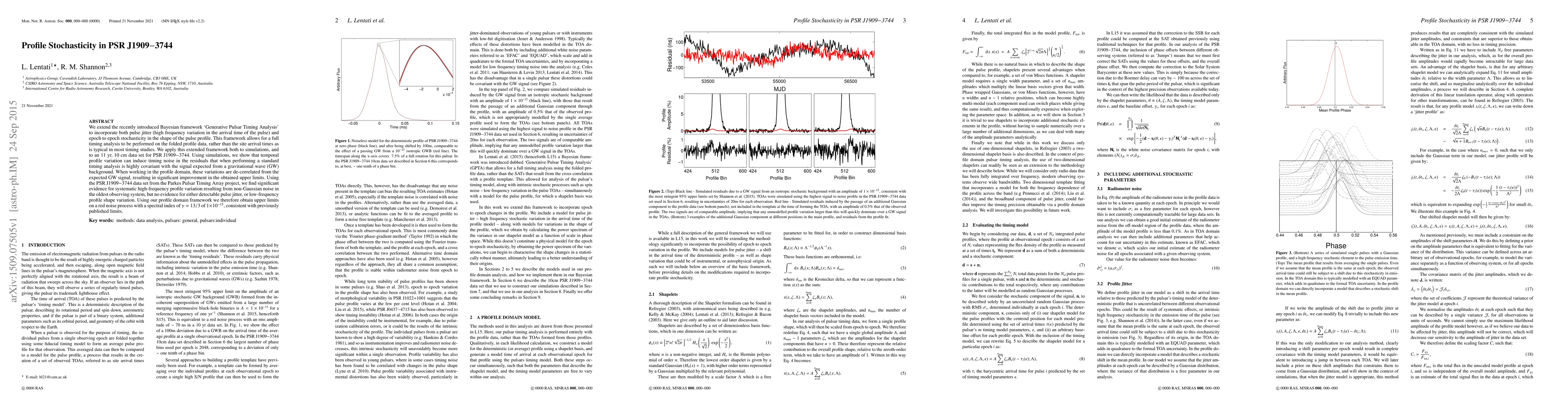 We extend the recently introduced Bayesian framework `Generative Pulsar Timing Analysis' to incorporate both pulse jitter (high frequency variation in the arrival time of the pulse) and epoch to epoch stochasticity in the shape of the pulse profile. This framework allows for a full timing analysis to be performed on the folded profile data, rather than the site arrival times as is typical in most timing studies. We apply this extended framework both to simulations, and to an 11 yr, 10 cm data set for PSR J1909$-$3744. Using simulations, we show that temporal profile variation can induce timing noise in the residuals that when performing a standard timing analysis is highly covariant with the signal expected from a gravitational wave (GW) background. When working in the profile domain, these variations are de-correlated from the expected GW signal, resulting in significant improvement in the obtained upper limits. Using the PSR J1909$-$3744 data set from the Parkes Pulsar Timing Array project, we find significant evidence for systematic high-frequency profile variation resulting from non-Gaussian noise in the oldest observing system, but no evidence for either detectable pulse jitter, or low-frequency profile shape variation. Using our profile domain framework we therefore obtain upper limits on a red noise process with a spectral index of $\gamma = 13/3$ of $1\times10^{-15}$, consistent with previously published limits.
