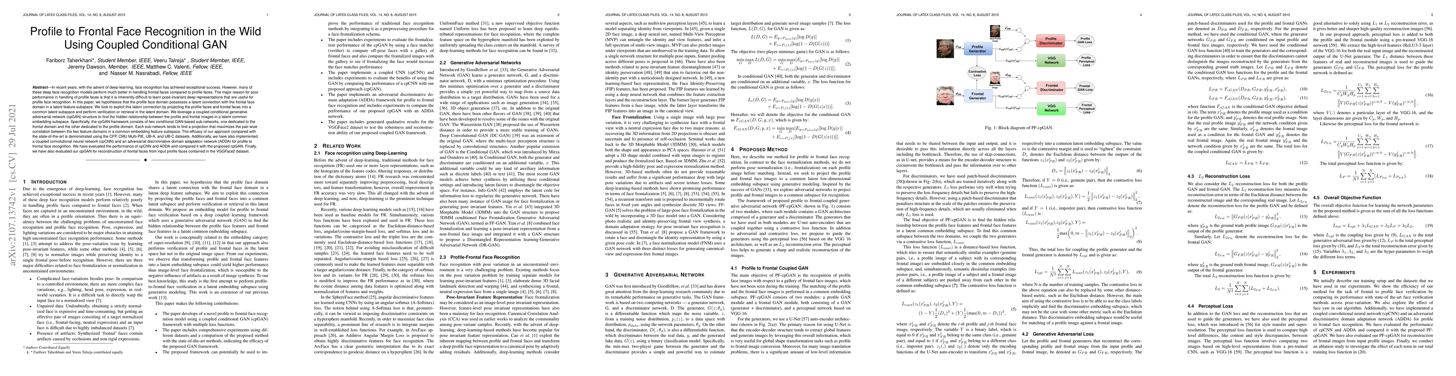 Researchers propose a new approach to recognizing profiles faces using a coupled conditional GAN, which leverages a latent connection between profile and frontal face domains for improved performance. The method outperforms state-of-the-art approaches on several datasets.