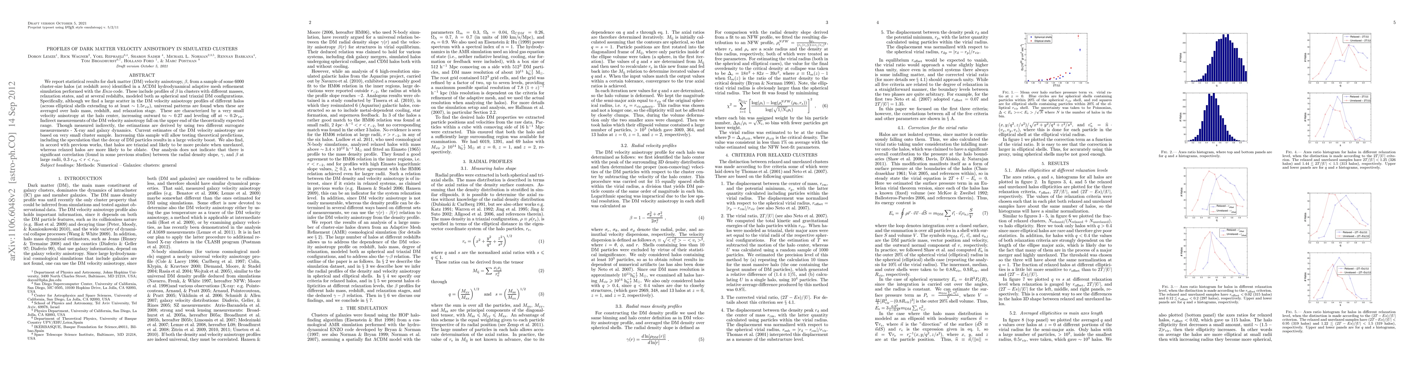 We report statistical results for dark matter (DM) velocity anisotropy, \beta, from a sample of some 6000 cluster-size halos (at redshift zero) identified in a \Lambda CDM hydrodynamical adaptive mesh refinement simulation performed with the Enzo code. These include profiles of \beta\ in clusters with different masses, relaxation states, and at several redshifts, modeled both as spherical and triaxial DM configurations. Specifically, although we find a large scatter in the DM velocity anisotropy profiles of different halos (across elliptical shells extending to at least ~$1.5 r_{vir}$), universal patterns are found when these are averaged over halo mass, redshift, and relaxation stage. These are characterized by a very small velocity anisotropy at the halo center, increasing outward to about 0.27 and leveling off at about $0.2 r_{vir}$. Indirect measurements of the DM velocity anisotropy fall on the upper end of the theoretically expected range. Though measured indirectly, the estimations are derived by using two different surrogate measurements - X-ray and galaxy dynamics. Current estimates of the DM velocity anisotropy are based on very small cluster sample. Increasing this sample will allow testing theoretical predictions, including the speculation that the decay of DM particles results in a large velocity boost. We also find, in accord with previous works, that halos are triaxial and likely to be more prolate when unrelaxed, whereas relaxed halos are more likely to be oblate. Our analysis does not indicate that there is significant correlation (found in some previous studies) between the radial density slope, \gamma, and \beta\ at large radii, $0.3 r_{vir} < r < r_{vir}$.