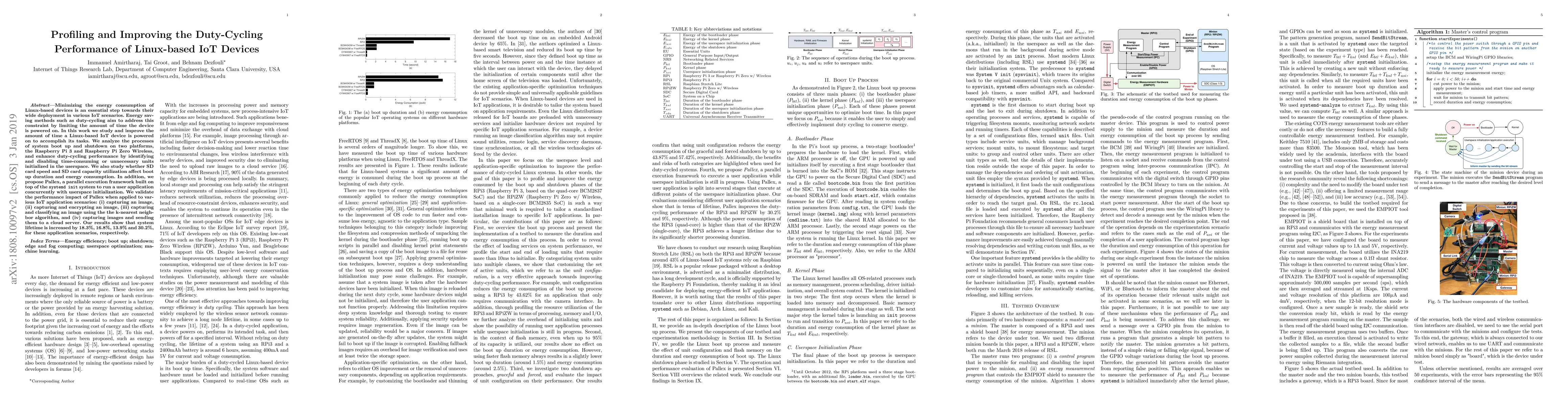This paper investigates methods to enhance the duty-cycling performance of Linux-based IoT devices, focusing on reducing boot-up time and energy consumption. It introduces 'Pallex', a parallel execution framework that concurrently runs user applications with userspace initialization, achieving up to 30.2% increase in system lifetime across various IoT applications.