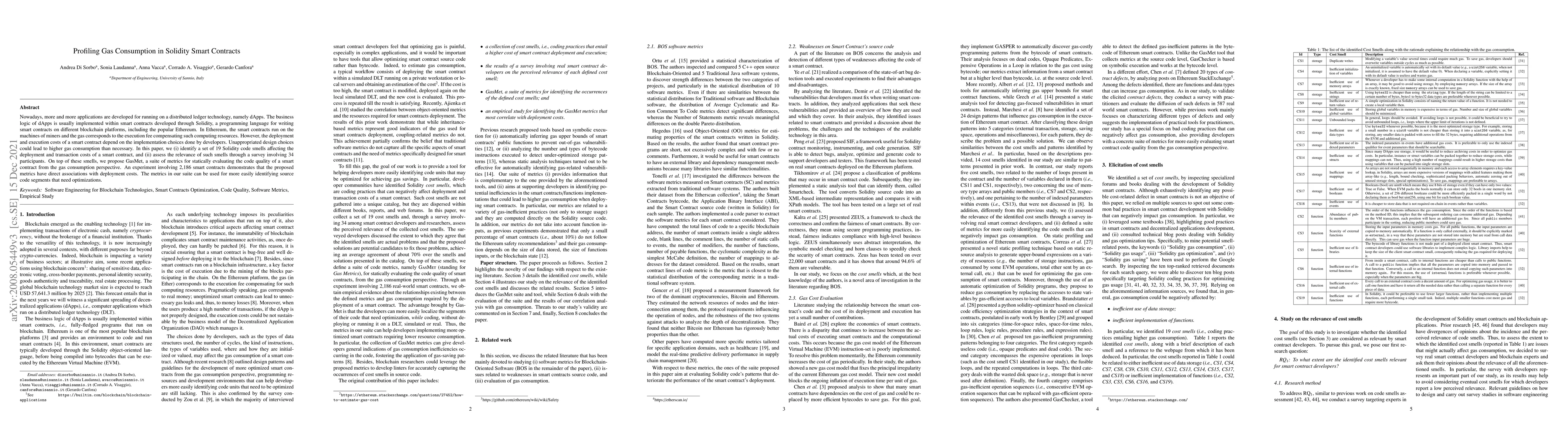 This paper identifies 19 Solidity code smells that increase gas consumption in smart contracts and evaluates their relevance through a survey. It introduces GasMet, a suite of metrics to assess code quality based on gas usage, validated by an experiment on 2,186 contracts.