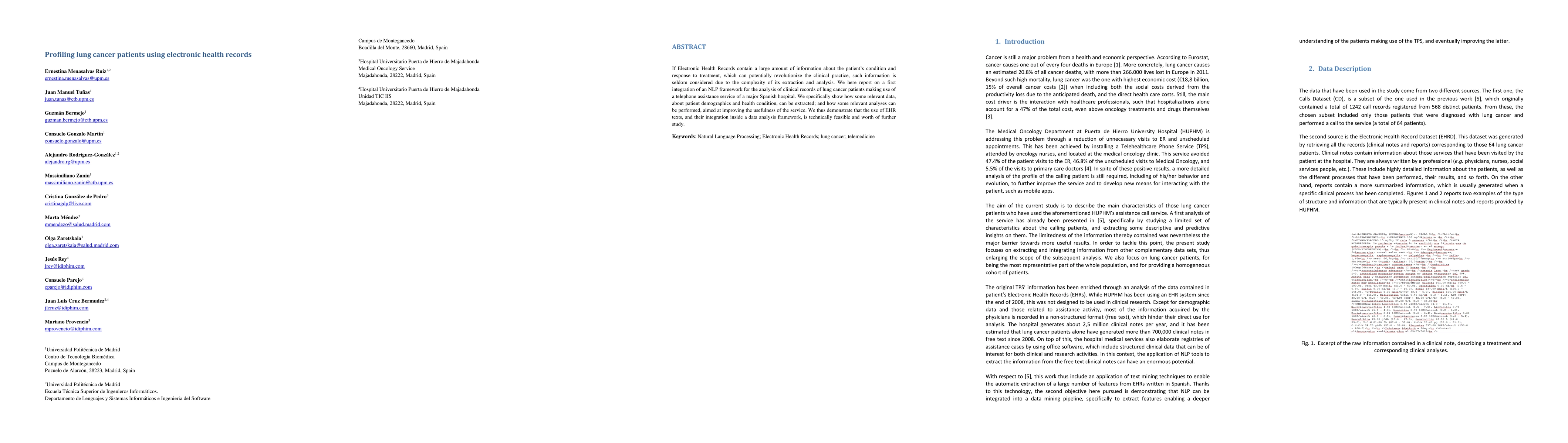 This study integrates an NLP framework to analyze electronic health records of lung cancer patients, extracting relevant data on demographics and health conditions. The findings demonstrate the technical feasibility and potential benefits of utilizing EHR texts for improved clinical practice and service analysis.