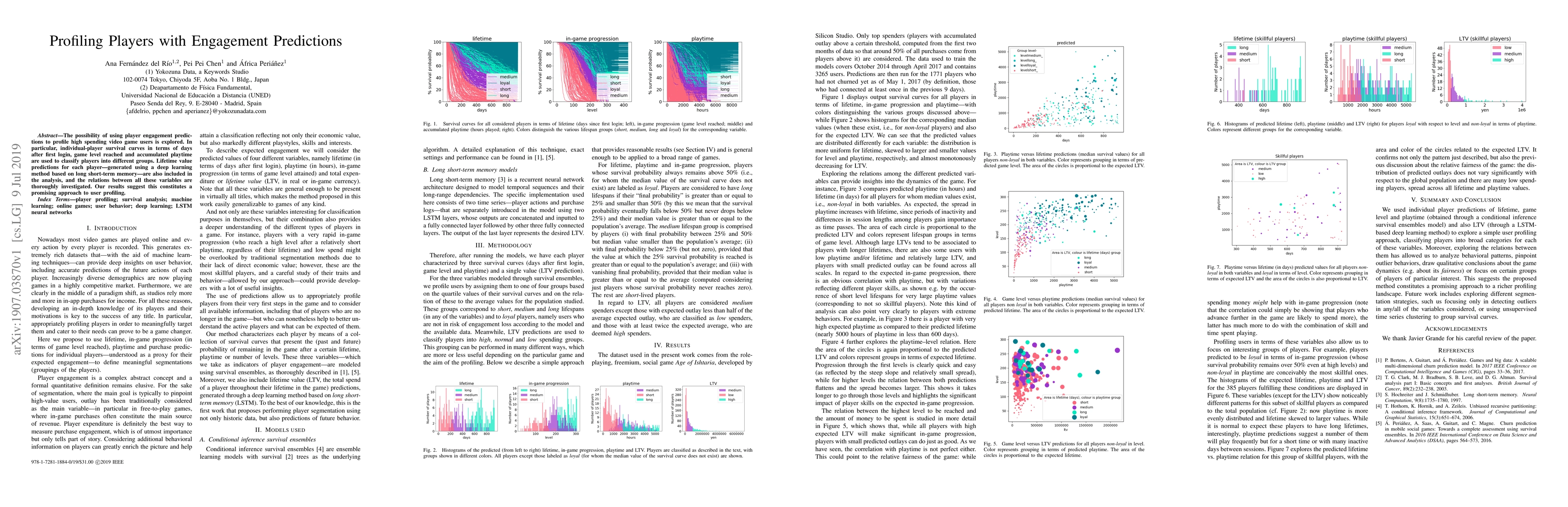 This research explores using player engagement predictions to profile high-spending video game users, employing deep learning methods to classify players based on survival curves and lifetime value. The study finds this approach promising for user profiling.