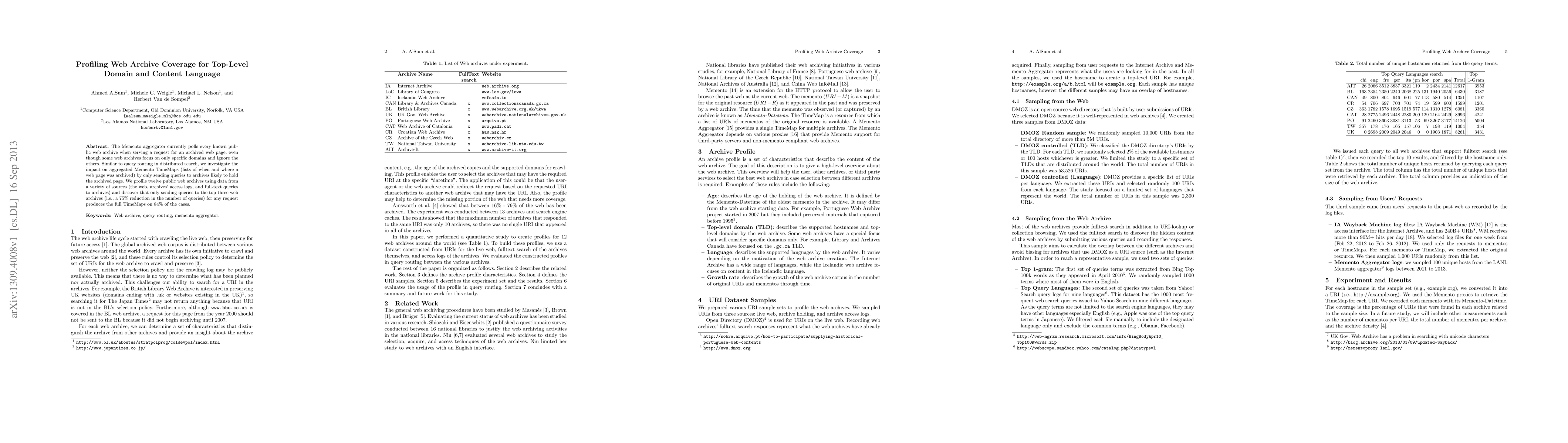 The Memento aggregator currently polls every known public web archive when serving a request for an archived web page, even though some web archives focus on only specific domains and ignore the others. Similar to query routing in distributed search, we investigate the impact on aggregated Memento TimeMaps (lists of when and where a web page was archived) by only sending queries to archives likely to hold the archived page. We profile twelve public web archives using data from a variety of sources (the web, archives' access logs, and full-text queries to archives) and discover that only sending queries to the top three web archives (i.e., a 75% reduction in the number of queries) for any request produces the full TimeMaps on 84% of the cases.