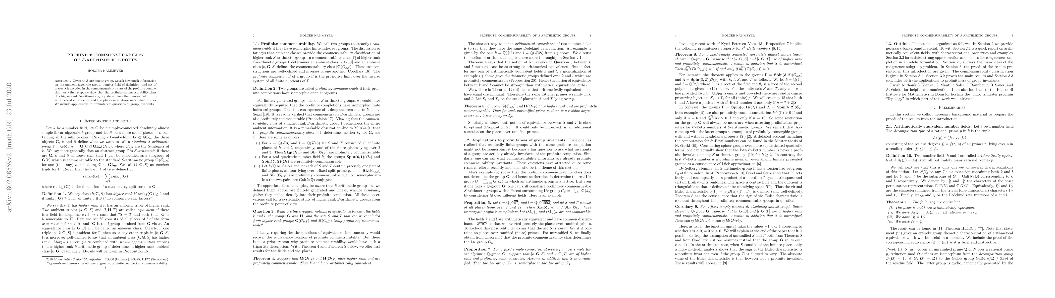 Given an S-arithmetic group, we ask how much information on the ambient algebraic group, number field of definition, and set of places S is encoded in the commensurability class of the profinite completion. As a first step, we show that the profinite commensurability class of a higher rank S-arithmetic group determines the number field up to arithmetical equivalence and the places in S above unramified primes. We include applications to profiniteness questions of group invariants.