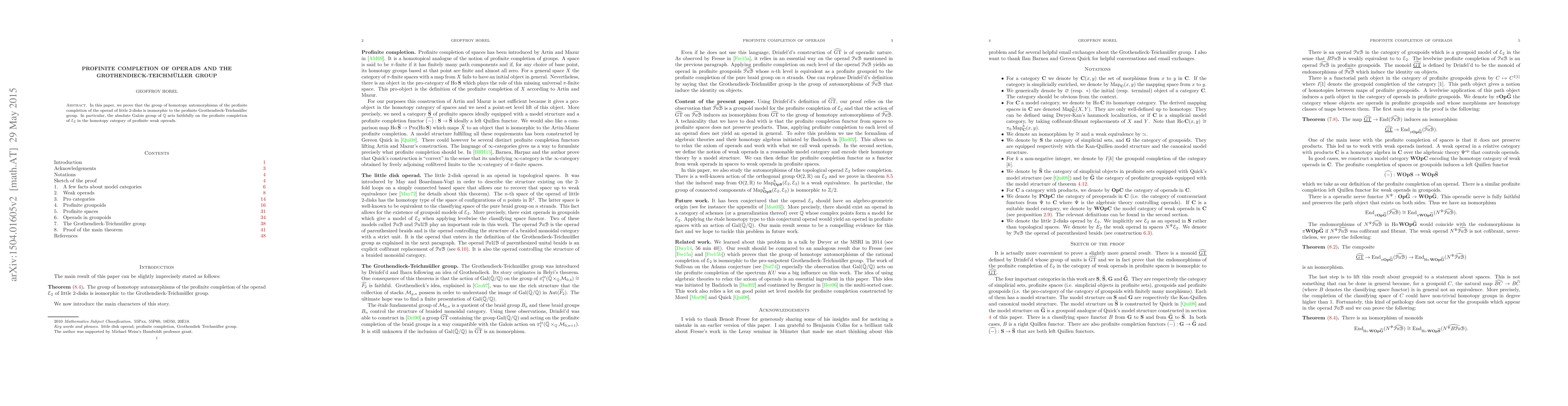 Summary: The paper establishes an isomorphism between the homotopy automorphisms of the profinite completion of the little $2$-disks operad and the profinite Grothendieck-Teichmüller group, demonstrating a faithful action of the absolute Galois group of $\mathbb{Q}$ on this profinite completion.