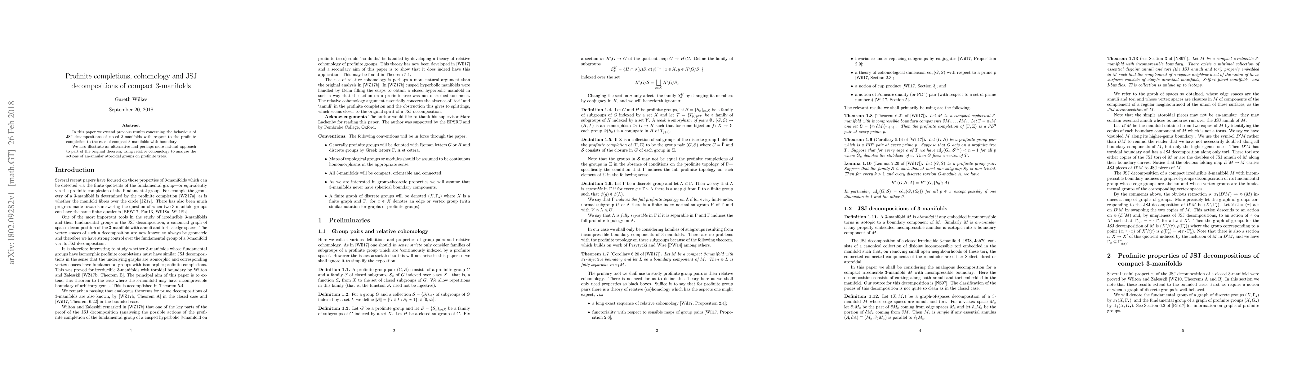 In this paper we extend previous results concerning the behaviour of JSJ decompositions of closed 3-manifolds with respect to the profinite completion to the case of compact 3-manifolds with boundary. We also illustrate an alternative and perhaps more natural approach to part of the original theorem, using relative cohomology to analyse the actions of an-annular atoroidal groups on profinite trees.