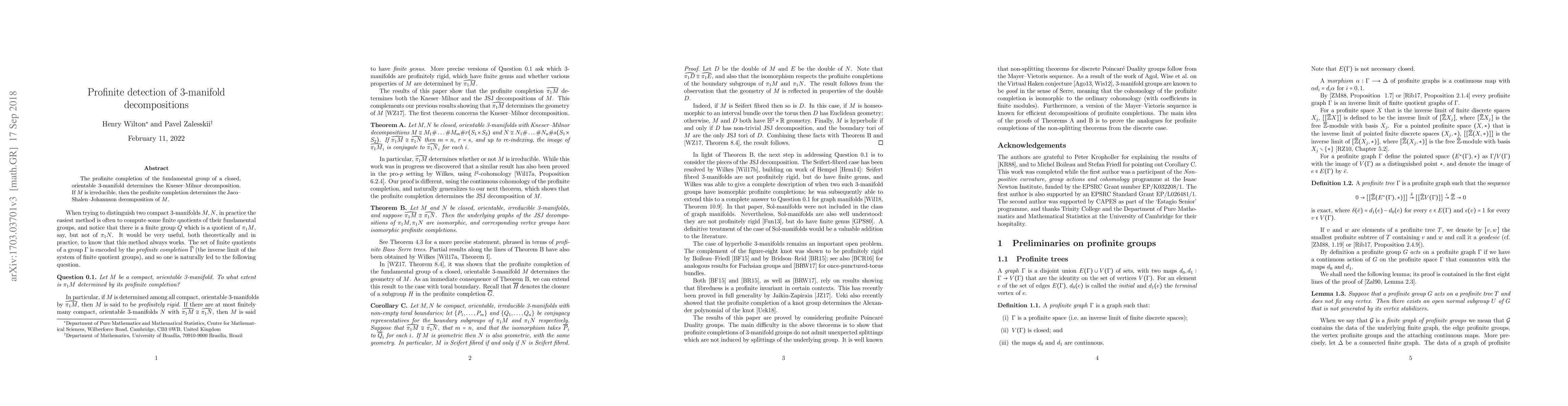 The profinite completion of the fundamental group of a closed, orientable $3$-manifold determines the Kneser--Milnor decomposition. If $M$ is irreducible, then the profinite completion determines the Jaco--Shalen--Johannson decomposition of $M$.