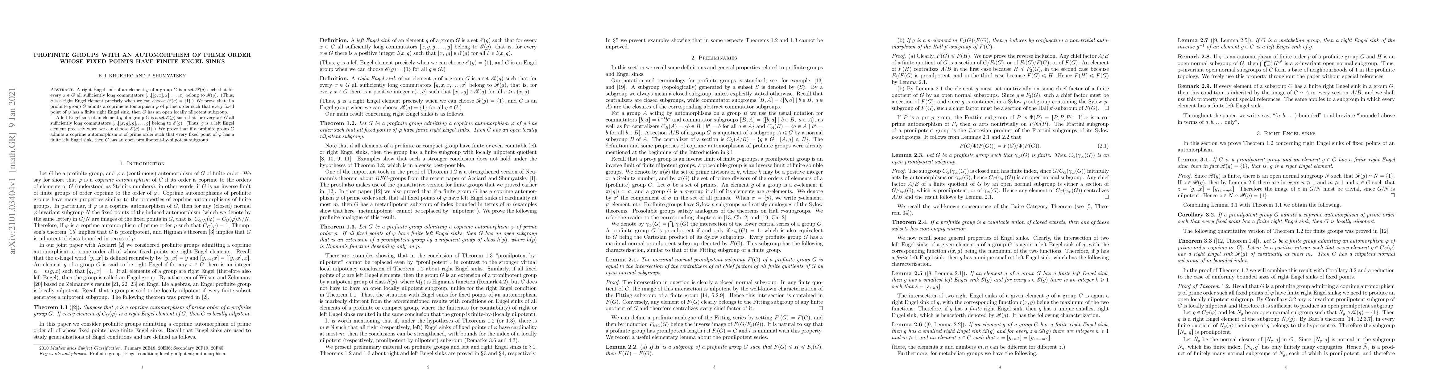 A right Engel sink of an element $g$ of a group $G$ is a set ${\mathscr R}(g)$ such that for every $x\in G$ all sufficiently long commutators $[...[[g,x],x],\dots ,x]$ belong to ${\mathscr R}(g)$. (Thus, $g$ is a right Engel element precisely when we can choose ${\mathscr R}(g)=\{ 1\}$.) We prove that if a profinite group $G$ admits a coprime automorphism $\varphi $ of prime order such that every fixed point of $\varphi $ has a finite right Engel sink, then $G$ has an open locally nilpotent subgroup. A left Engel sink of an element $g$ of a group $G$ is a set ${\mathscr E}(g)$ such that for every $x\in G$ all sufficiently long commutators $[...[[x,g],g],\dots ,g]$ belong to ${\mathscr E}(g)$. (Thus, $g$ is a left Engel element precisely when we can choose ${\mathscr E}(g)=\{ 1\}$.) We prove that if a profinite group $G$ admits a coprime automorphism $\varphi $ of prime order such that every fixed point of $\varphi $ has a finite left Engel sink, then $G$ has an open pronilpotent-by-nilpotent subgroup.