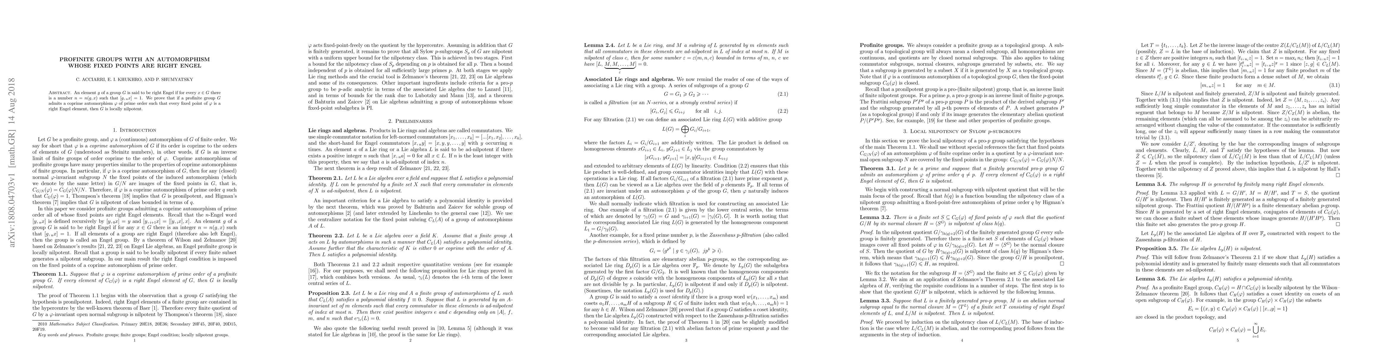 This paper proves that if a profinite group $G$ has a coprime automorphism of prime order $\varphi$ with all fixed points being right Engel elements, then $G$ is locally nilpotent. Right Engel elements are characterized by a specific commutator condition with other group elements.