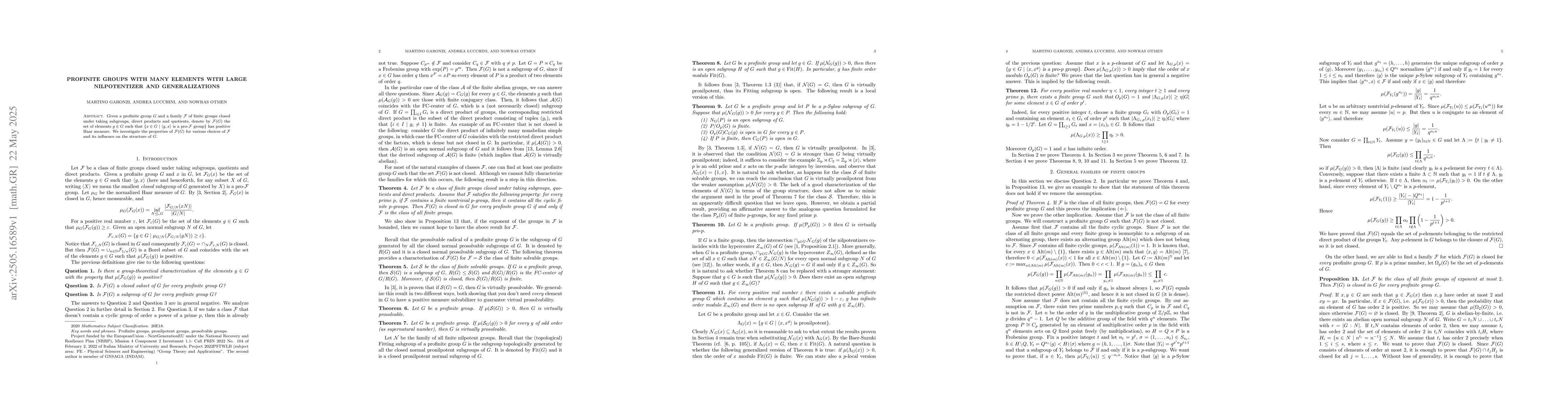 Development of a framework to study elements with large nilpotentizers in profinite groups through measure-theoretic lenses, generalizing prior work on specific families of groups.
