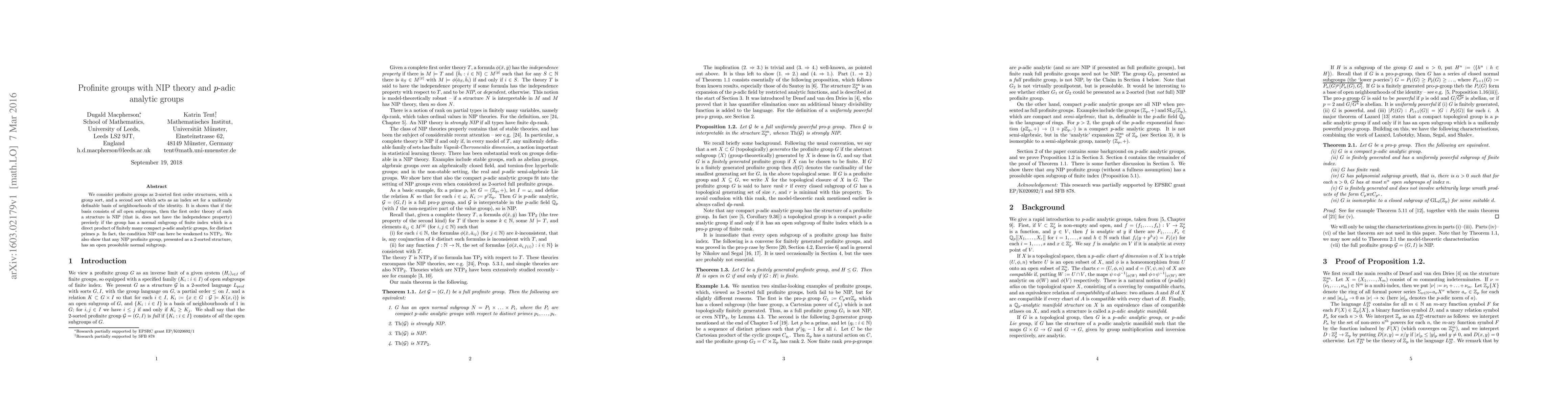 This paper investigates the first-order theory of profinite groups structured in two sorts, showing that NIP (no independence property) holds if the group has a normal subgroup of finite index that is a direct product of finitely many compact $p$-adic analytic groups for distinct primes. It further demonstrates that any NIP profinite group has an open prosoluble normal subgroup.