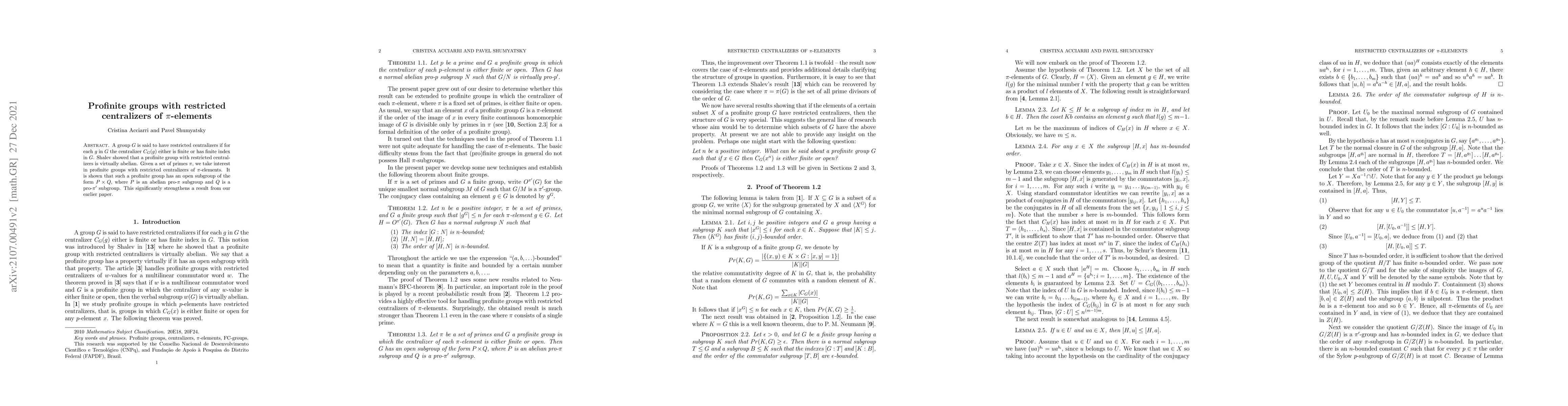 Shalev demonstrated that profinite groups with restricted centralizers are virtually abelian. This paper extends the result to profinite groups with restricted centralizers of $\pi$-elements, showing they have an open subgroup of the form $P \times Q$, where $P$ is an abelian pro-$\pi$ subgroup and $Q$ is a pro-$\pi'$ subgroup.