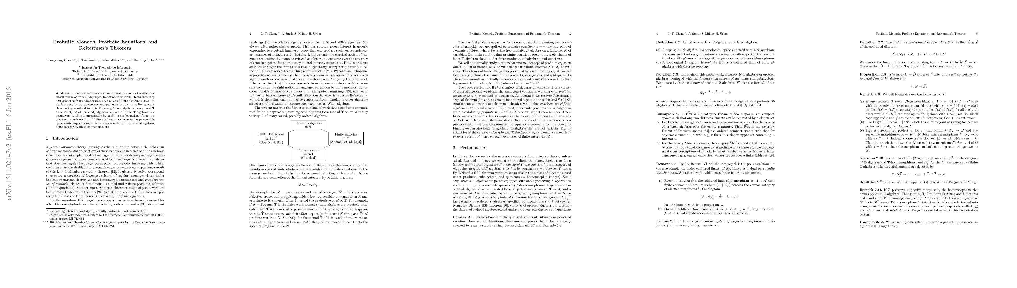 This paper generalizes Reiterman's theorem to finite Eilenberg-Moore algebras for monads on varieties of algebras, showing that classes of finite T-algebras are pseudovarieties if specified by profinite equations. It also demonstrates that quasivarieties can be described by profinite implications, extending the results to finite ordered algebras, categories, and infinity-monoids.
