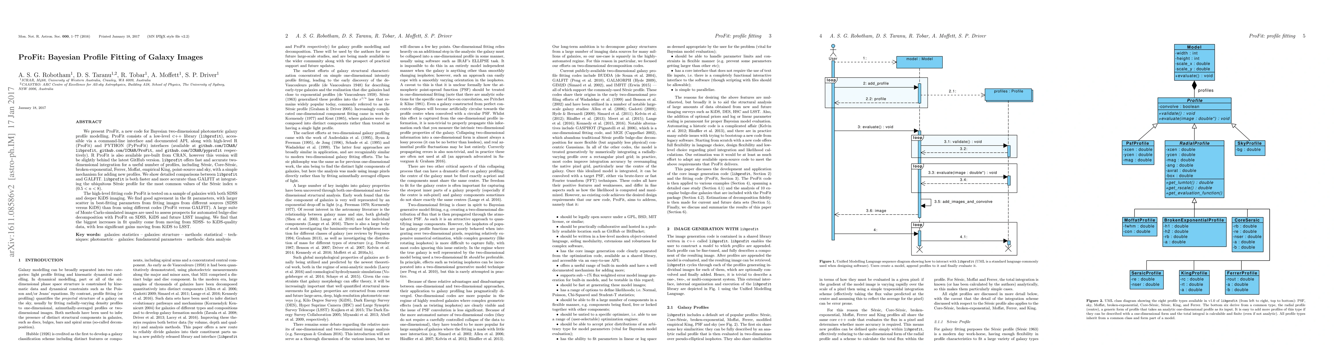 We present ProFit, a new code for Bayesian two-dimensional photometric galaxy profile modelling. ProFit consists of a low-level C++ library (libprofit), accessible via a command-line interface and documented API, along with high-level R (ProFit) and Python (PyProFit) interfaces (available at github.com/ICRAR/ libprofit, github.com/ICRAR/ProFit, and github.com/ICRAR/pyprofit respectively). R ProFit is also available pre-built from CRAN, however this version will be slightly behind the latest GitHub version. libprofit offers fast and accurate two- dimensional integration for a useful number of profiles, including Sersic, Core-Sersic, broken-exponential, Ferrer, Moffat, empirical King, point-source and sky, with a simple mechanism for adding new profiles. We show detailed comparisons between libprofit and GALFIT. libprofit is both faster and more accurate than GALFIT at integrating the ubiquitous Serrsic profile for the most common values of the Serrsic index n (0.5 < n < 8). The high-level fitting code ProFit is tested on a sample of galaxies with both SDSS and deeper KiDS imaging. We find good agreement in the fit parameters, with larger scatter in best-fit parameters from fitting images from different sources (SDSS vs KiDS) than from using different codes (ProFit vs GALFIT). A large suite of Monte Carlo-simulated images are used to assess prospects for automated bulge-disc decomposition with ProFit on SDSS, KiDS and future LSST imaging. We find that the biggest increases in fit quality come from moving from SDSS- to KiDS-quality data, with less significant gains moving from KiDS to LSST.