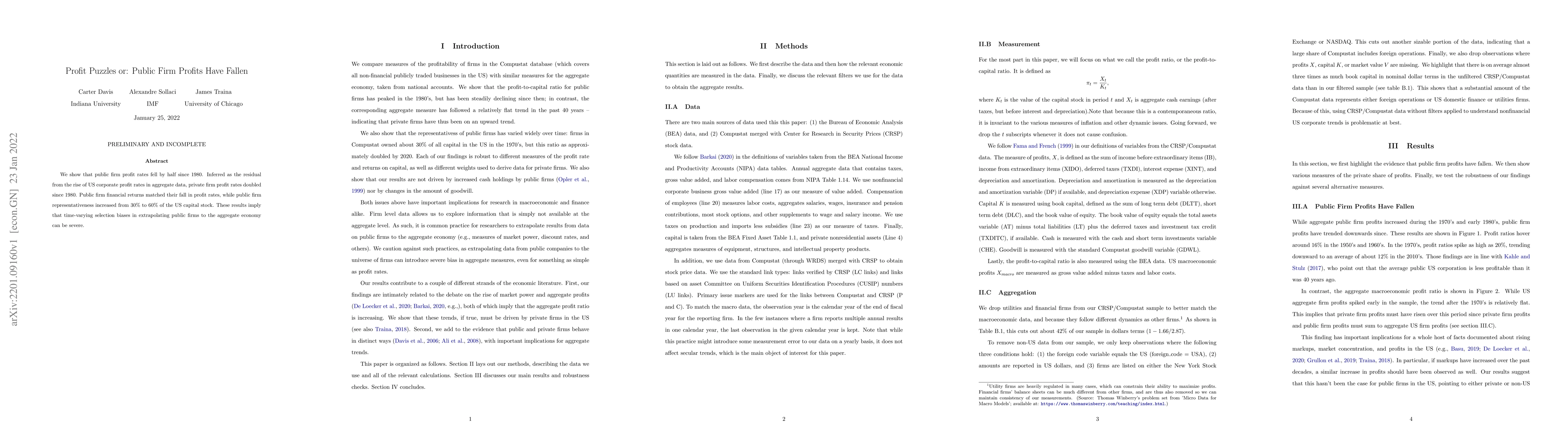 We show that public firm profit rates fell by half since 1980. Inferred as the residual from the rise of US corporate profit rates in aggregate data, private firm profit rates doubled since 1980. Public firm financial returns matched their fall in profit rates, while public firm representativeness increased from 30% to 60% of the US capital stock. These results imply that time-varying selection biases in extrapolating public firms to the aggregate economy can be severe.