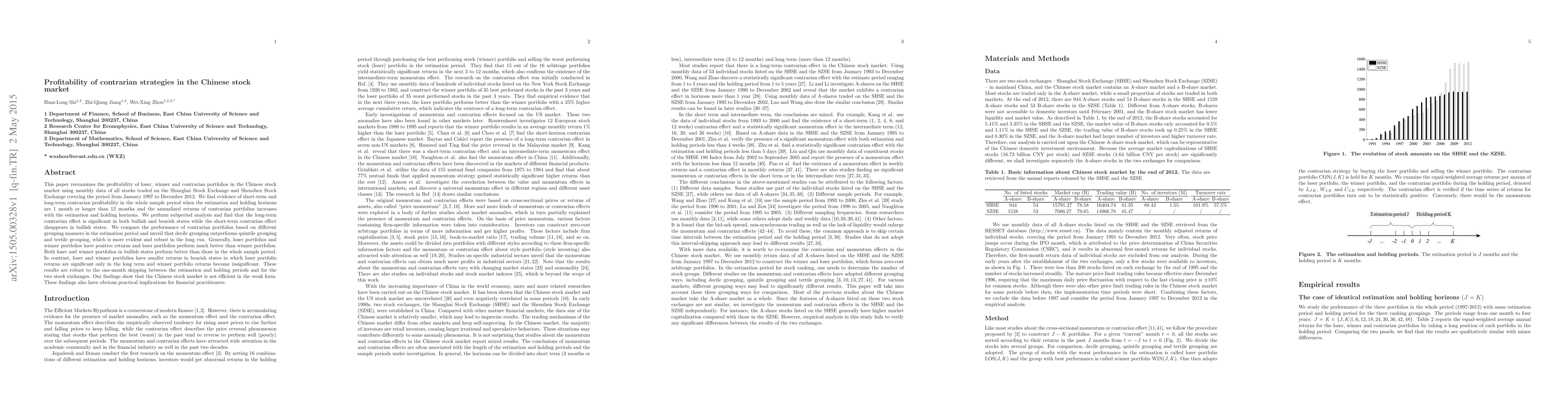This paper reexamines the profitability of loser, winner and contrarian portfolios in the Chinese stock market using monthly data of all stocks traded on the Shanghai Stock Exchange and Shenzhen Stock Exchange covering the period from January 1997 to December 2012. We find evidence of short-term and long-term contrarian profitability in the whole sample period when the estimation and holding horizons are 1 month or longer than 12 months and the annualized returns of contrarian portfolios increases with the estimation and holding horizons. We perform subperiod analysis and find that the long-term contrarian effect is significant in both bullish and bearish states while the short-term contrarian effect disappears in bullish states. We compare the performance of contrarian portfolios based on different grouping manners in the estimation period and unveil that decile grouping outperforms quintile grouping and tertile grouping, which is more evident and robust in the long run. Generally, loser portfolios and winner portfolios have positive returns and loser portfolios perform much better than winner portfolios. Both loser and winner portfolios in bullish states perform better than those in the whole sample period. In contrast, loser and winner portfolios have smaller returns in bearish states in which loser portfolio returns are significant only in the long term and winner portfolio returns become insignificant. These results are robust to the one-month skipping between the estimation and holding periods and for the two stock exchanges. Our findings show that the Chinese stock market is not efficient in the weak form. These findings also have obvious practical implications for financial practitioners.