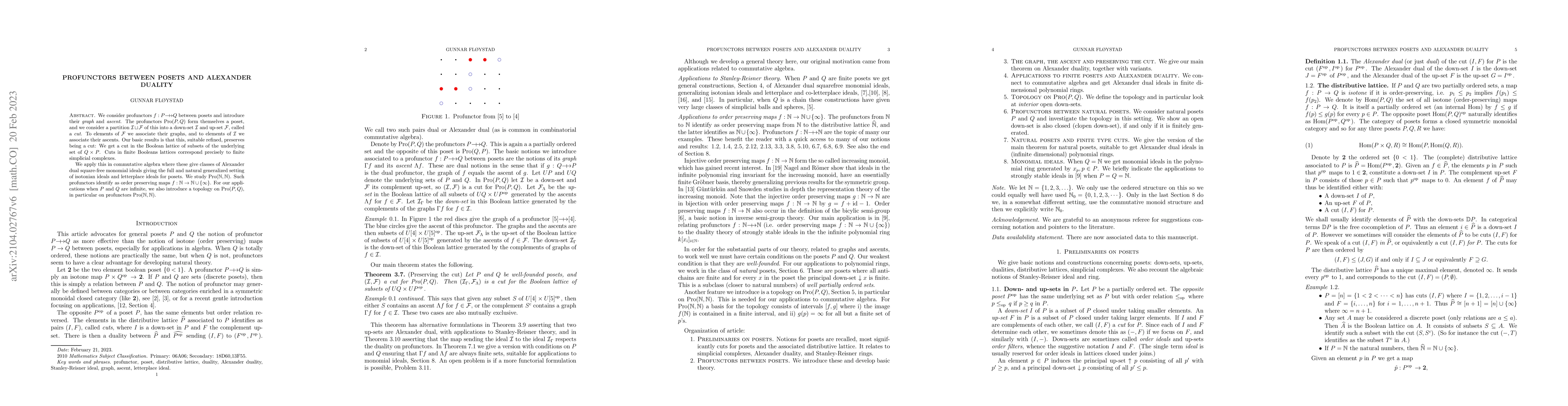 The paper introduces profunctors between posets, defines their graph and ascent, and establishes a cut in the Boolean lattice of subsets of the underlying set of $Q \times P$. It further explores the application in commutative algebra, identifying classes of Alexander dual square-free monomial ideals for posets.