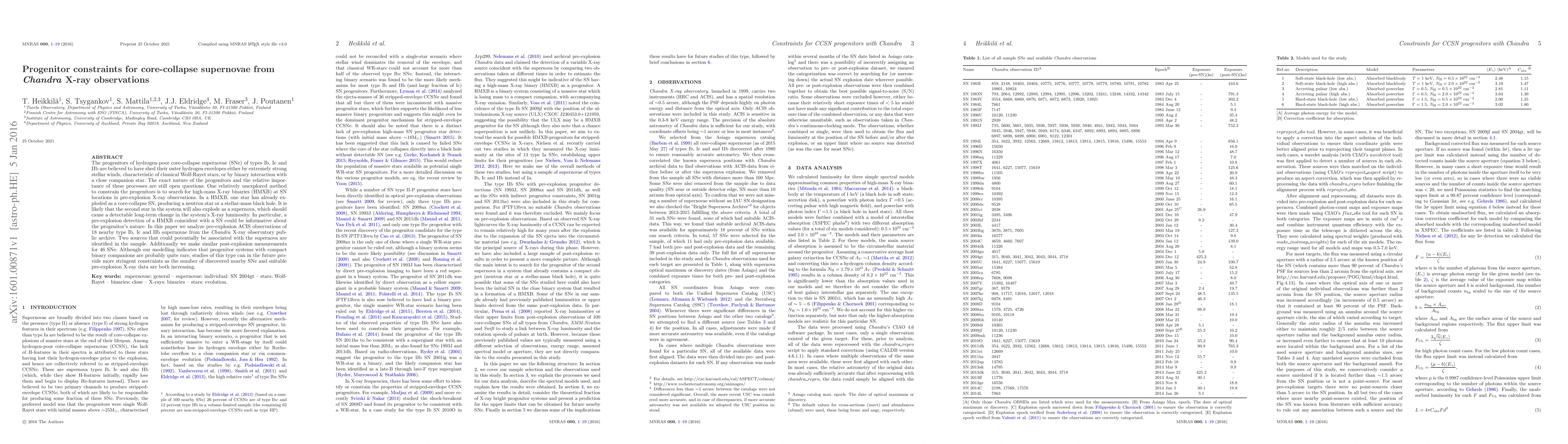 Researchers analyzed pre-explosion X-ray observations of 18 nearby supernovae to search for high-mass X-ray binaries that could constrain the progenitors of core-collapse supernovae.