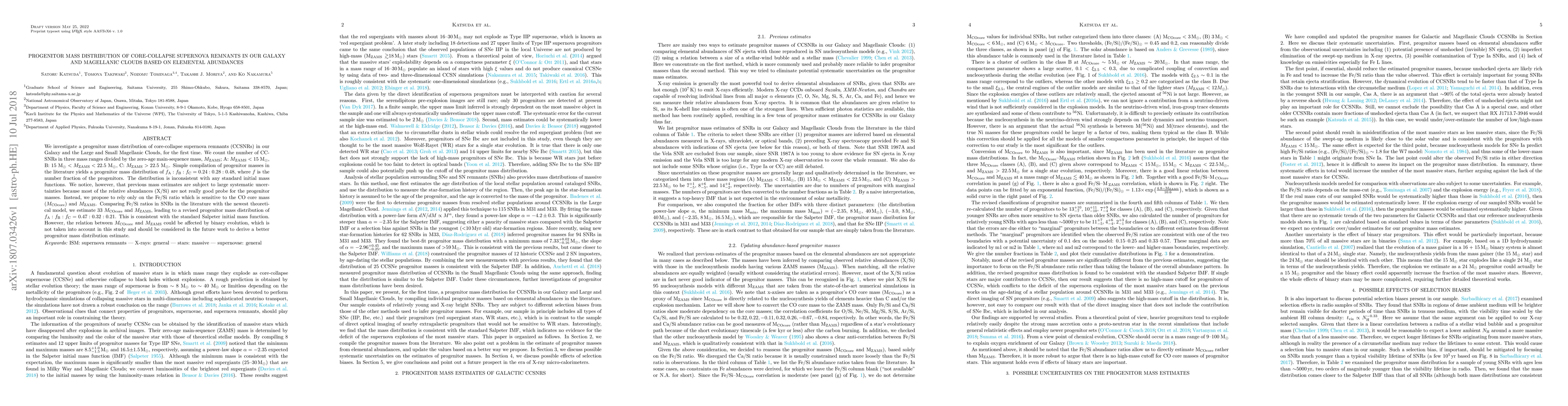 We investigate a progenitor mass distribution of core-collapse supernova remnants (CCSNRs) in our Galaxy and the Large and Small Magellanic Clouds, for the first time. We count the number of CCSNRs in three mass ranges divided by the zero-age main-sequence mass, $M_{\rm ZAMS}$; A: $M_{\rm ZAMS} < 15\ {\rm M}_\odot$, B: $15\ {\rm M}_\odot < M_{\rm ZAMS} < 22.5\ {\rm M}_\odot$, C: $M_{\rm ZAMS} > 22.5\ {\rm M}_\odot$. Simple compilation of progenitor masses in the literature yields a progenitor mass distribution of $f_{\rm A}: f_{\rm B}: f_{\rm C} =0.24:0.28:0.48$, where $f$ is the number fraction of the progenitors. The distribution is inconsistent with any standard initial mass functions. We notice, however, that previous mass estimates are subject to large systematic uncertainties because most of the relative abundances (X/Si) are not really good probe for the progenitor masses. Instead, we propose to rely only on the Fe/Si ratio which is sensitive to the CO core mass ($M_{\rm COcore}$) and $M_{\rm ZAMS}$. Comparing Fe/Si ratios in SNRs in the literature with the newest theoretical model, we estimate 33 $M_{\rm COcore}$ and $M_{\rm ZAMS}$, leading to a revised progenitor mass distribution of $f_{\rm A}: f_{\rm B}: f_{\rm C} = 0.47: 0.32 : 0.21$. This is consistent with the standard Salpeter initial mass function. However, the relation between $M_{\rm COcore}$ and $M_{\rm ZAMS}$ could be affected by binary evolution, which is not taken into account in this study and should be considered in the future work to derive a better progenitor mass distribution estimate.